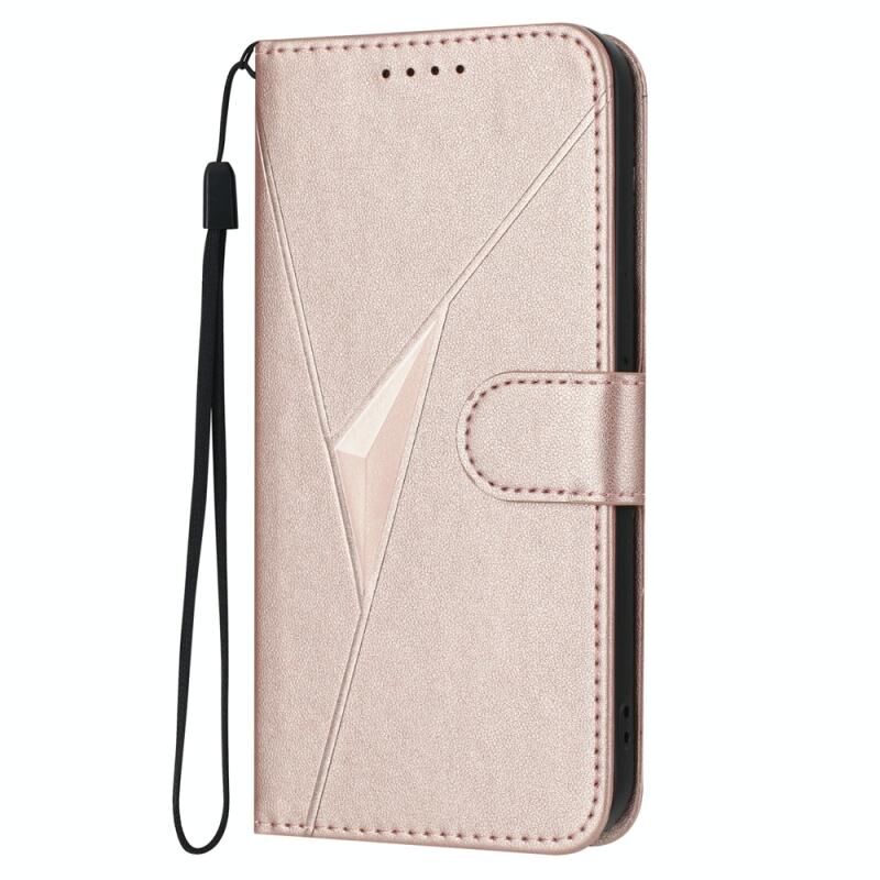 Για Samsung Galaxy S24 5G Τρίγωνο μοτίβο αγκράφα κούμπωμα δερμάτινη θήκη τηλεφώνου (Rose Gold)