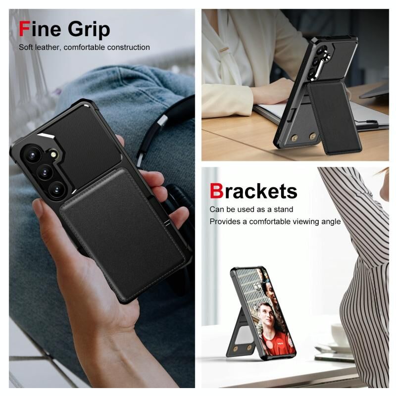 Για Samsung Galaxy S24 + 5G Κάθετη Flip κάρτα τσάντα κάτοχος δερμάτινη θήκη τηλεφώνου (Μαύρο)