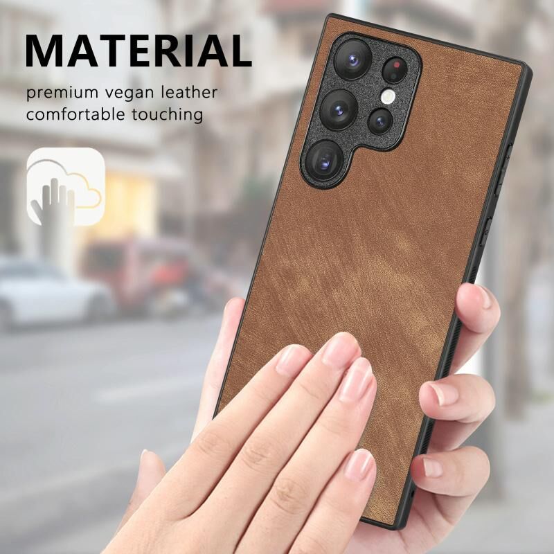 Για Samsung Galaxy S24 5G εκλεκτής ποιότητας δέρμα PC πίσω κάλυμμα τηλέφωνο υπόθεση (καφέ)
