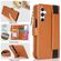 Για Samsung Galaxy S24 5G Wristband κάτοχος φερμουάρ πορτοφόλι RFID δερμάτινη θήκη τηλεφώνου (Καφέ)
