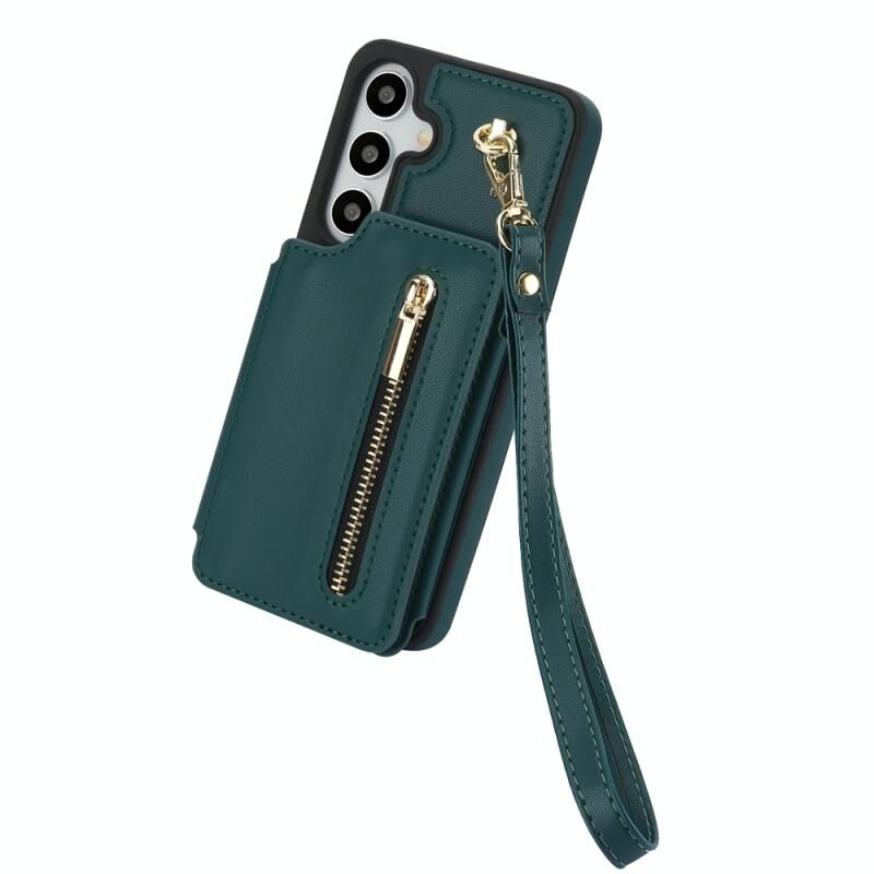 Για Samsung Galaxy S24 5G YM006 δέρμα αίσθηση φερμουάρ κάρτα τσάντα υπόθεση τηλεφώνου με διπλό κορδόνι (πράσινο)