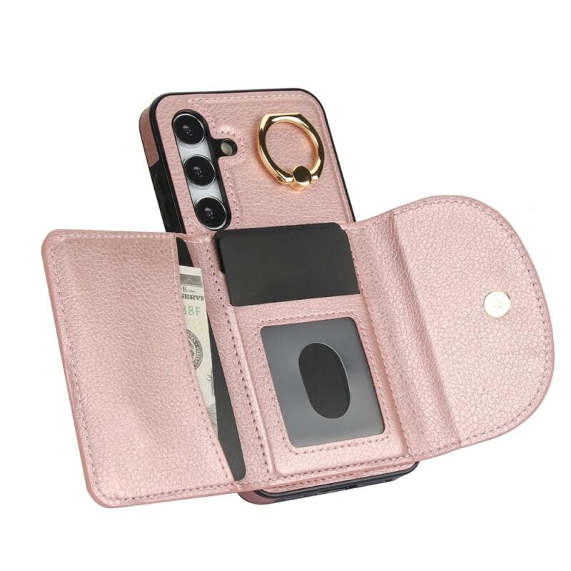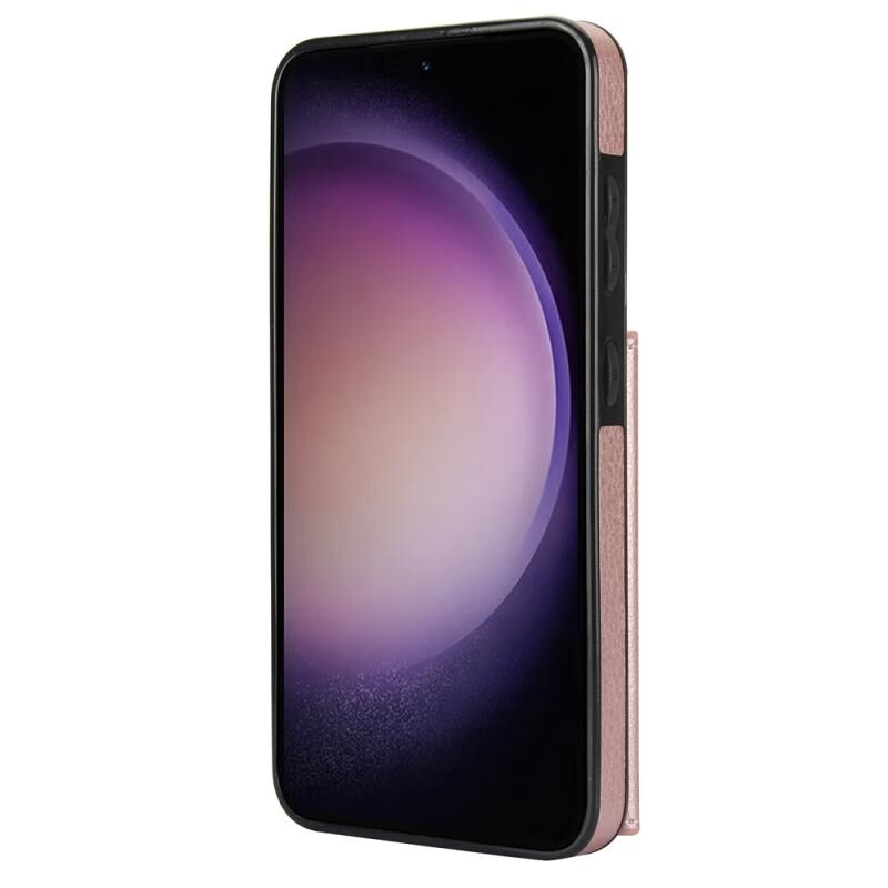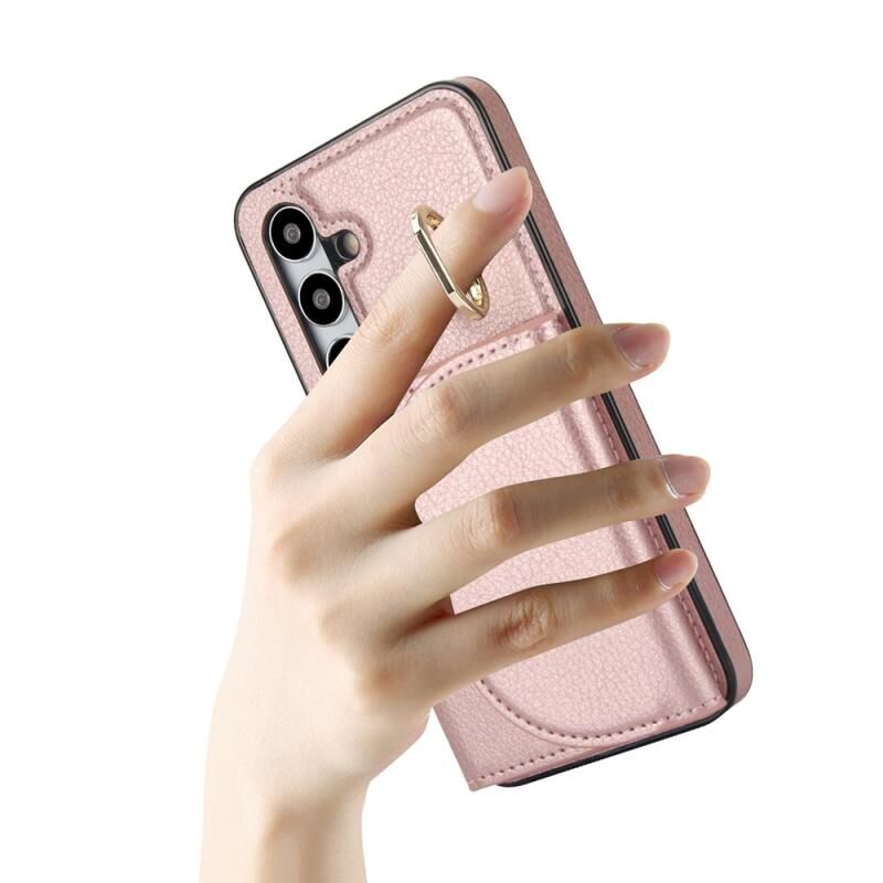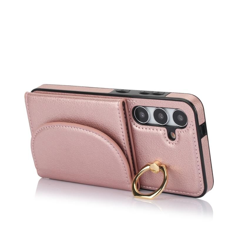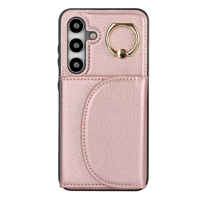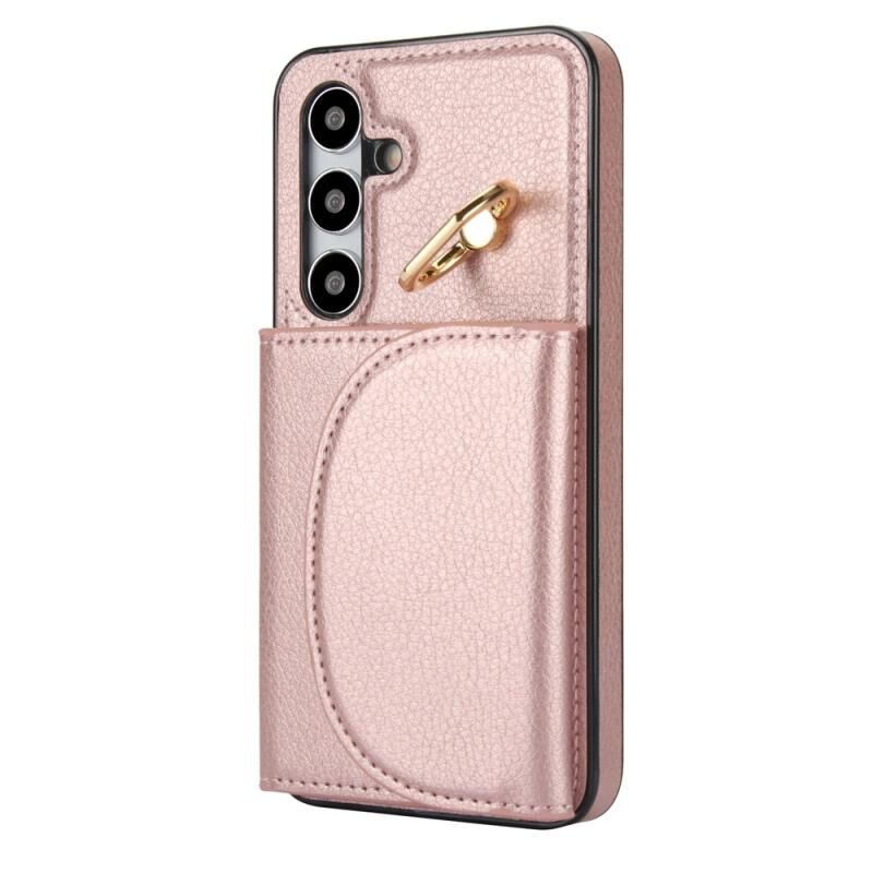 Για Samsung Galaxy S24 5G YM007 Ring κάτοχος κάρτα τσάντα τσάντα δέρμα αίσθηση υπόθεση τηλεφώνου (Rose Gold)