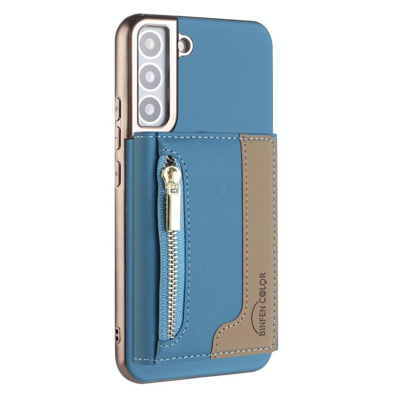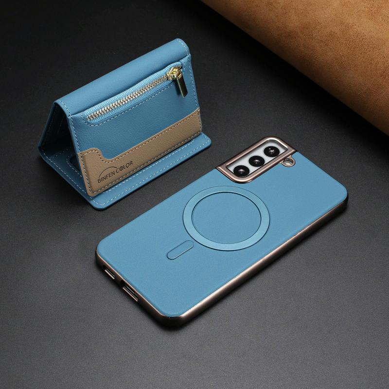 For Samsung Galaxy S24+ 5G Zipper Horizontal Magnetic Card Bag RFID MagSafe Phone Case(Baby Blue)
