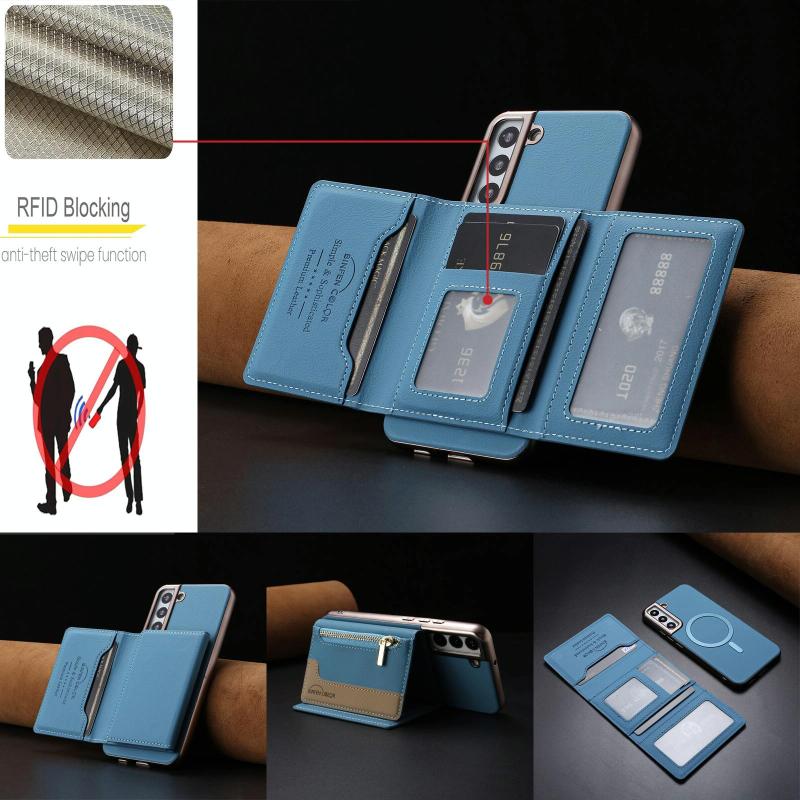 2. Magnetic Tri-Fold Wallet Design: Features a horizontal fold with a strong magnetic closure for easy access and secure storage.