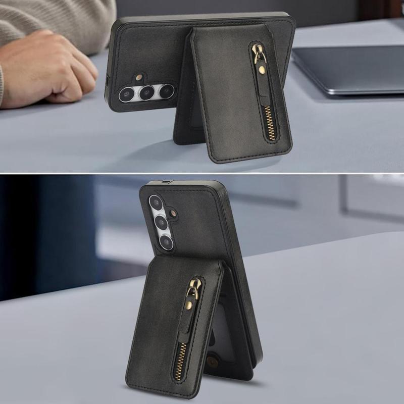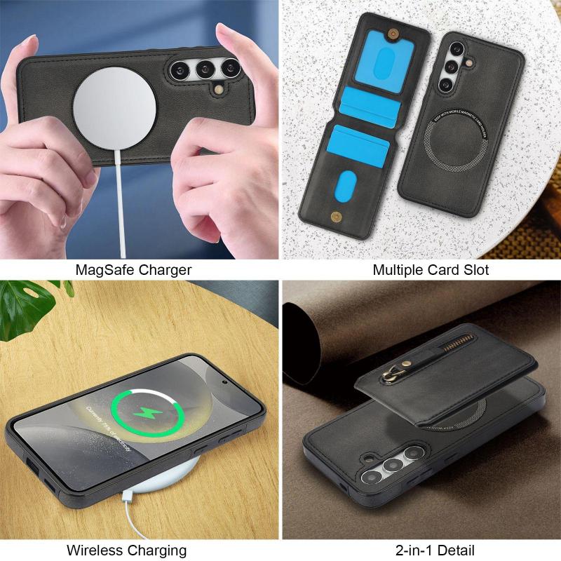 For Samsung Galaxy S24+ 5G Zipper Wallet Split MagSafe Leather Back Phone Case(Black)