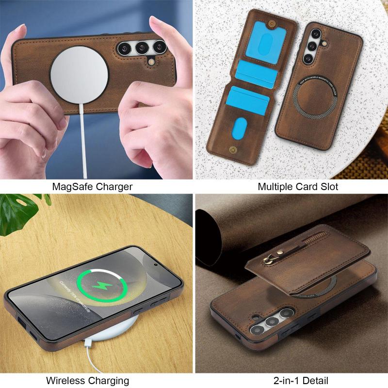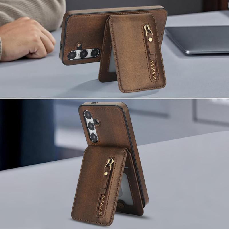 Για Samsung Galaxy S24 5G Δερμάτινη Θήκη με Μαγνητικό Κλείσιμο & Πορτοφόλι (Καφέ)