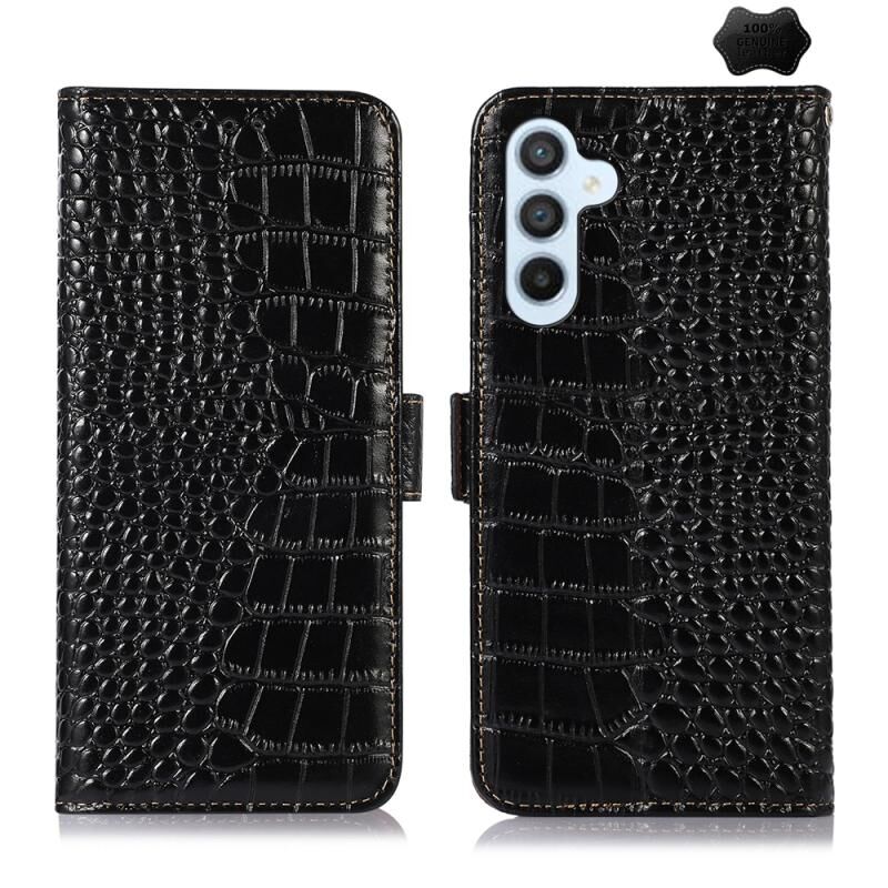 Θήκη τηλεφώνου Samsung Galaxy S24 από γνήσιο δέρμα αγελάδας με επικάλυψη κροκόδειλου (Μαύρο)