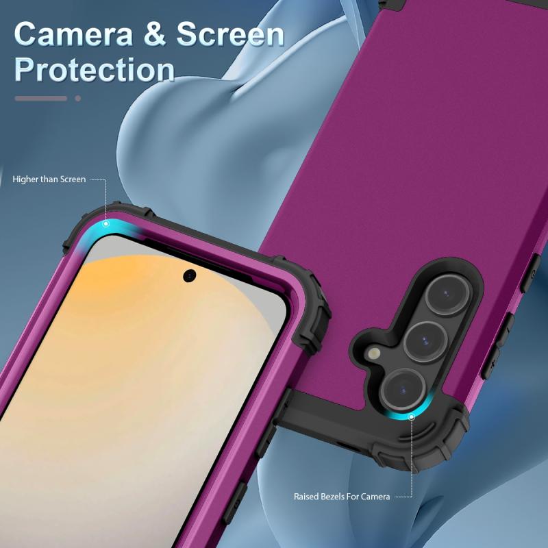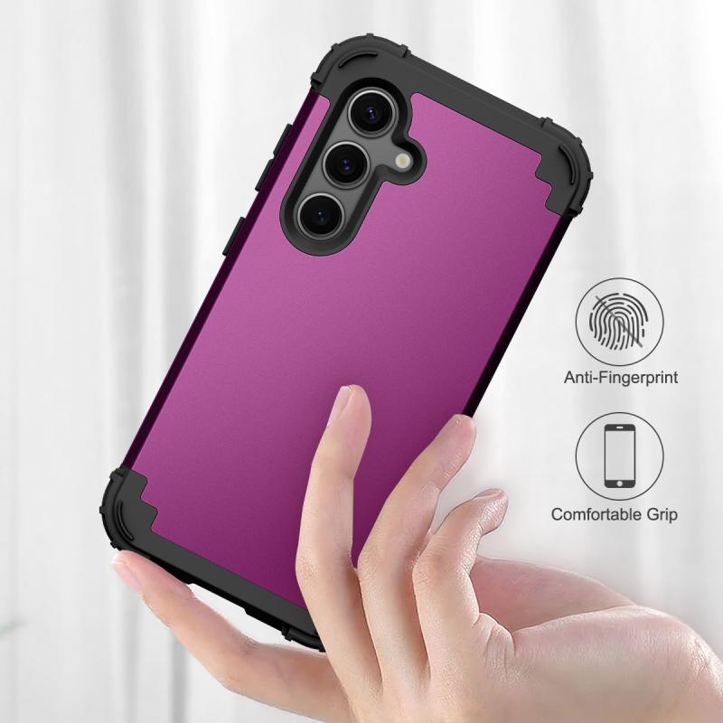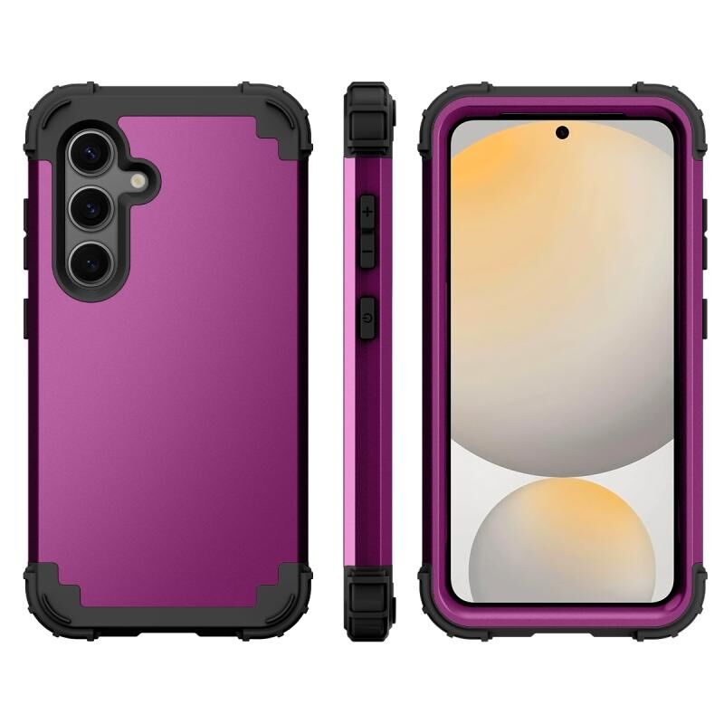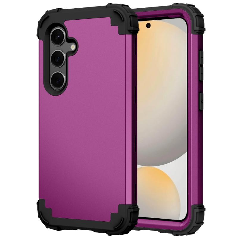 For Samsung Galaxy S24 FE 5G 3 in 1 Silicone Hybrid PC Shockproof Phone Case(Dark Purple Black)