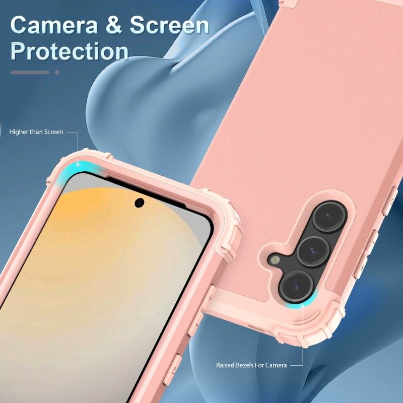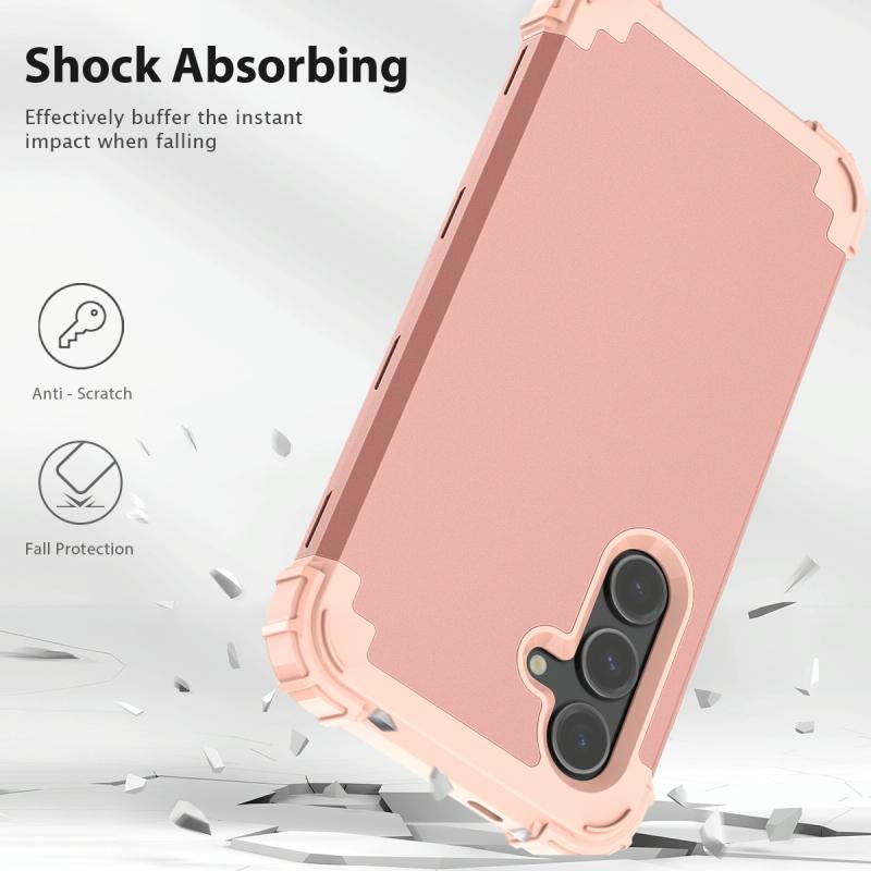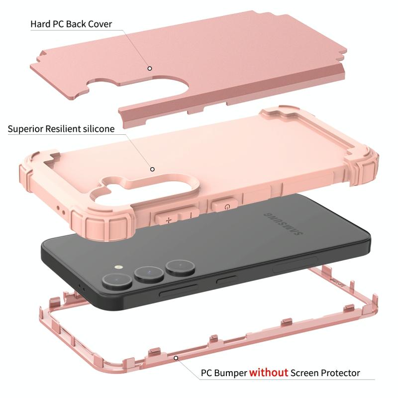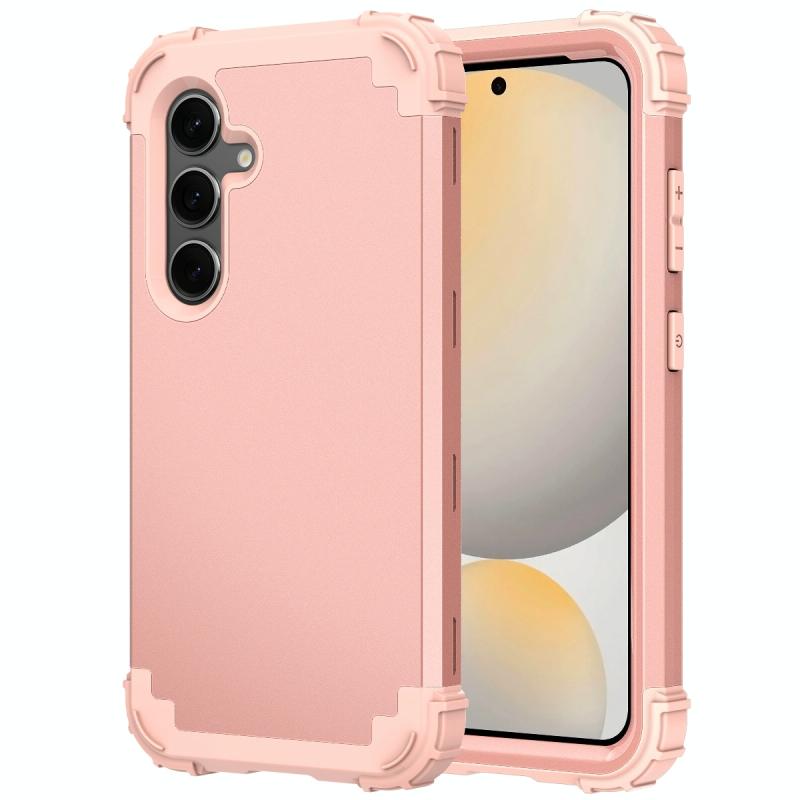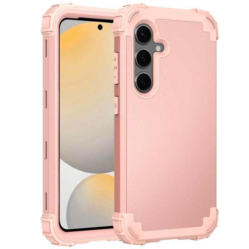 Θήκη κινητού τηλεφώνου 3 σε 1 από σιλικόνη και PC, ανθεκτική σε κρούσεις, για Samsung Galaxy S24 FE 5G (Ροζ χρυσός)