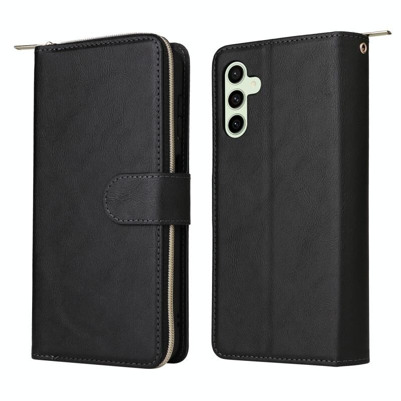 Για Samsung Galaxy S24 FE 5G 9-Card Slots φερμουάρ πορτοφόλι τσάντα δερμάτινη θήκη τηλεφώνου (μαύρο)