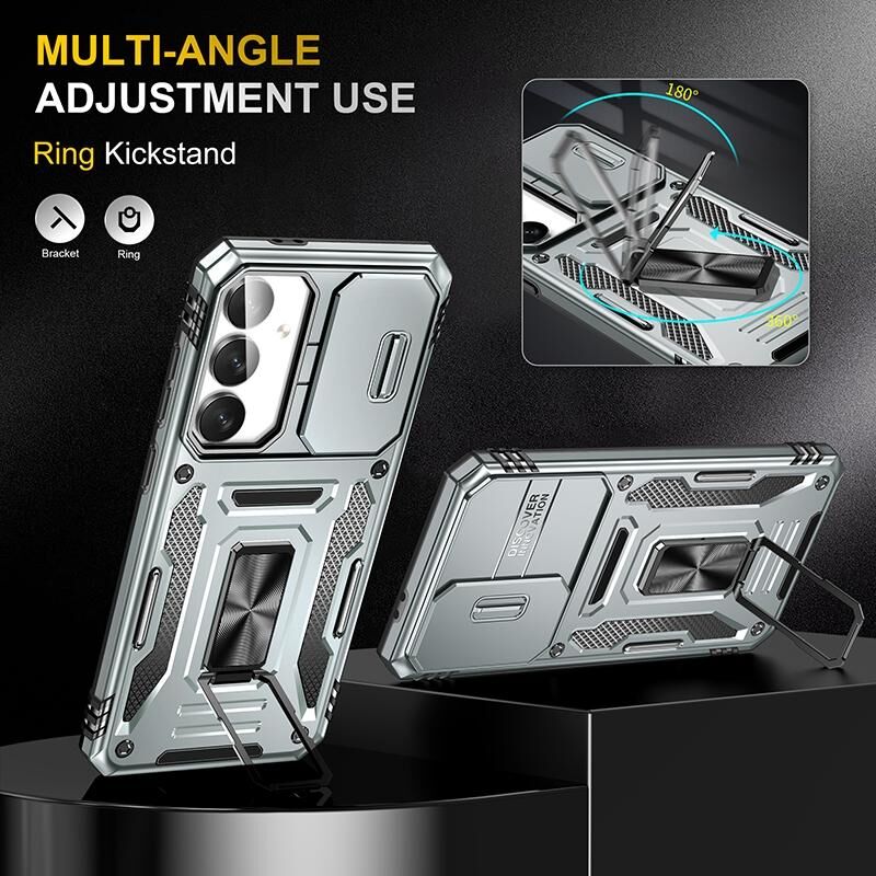 Για Samsung Galaxy S24 FE 5G Armor PC Hybrid TPU Κάμερα Ασπίδα θήκη τηλεφώνου (γκρι)