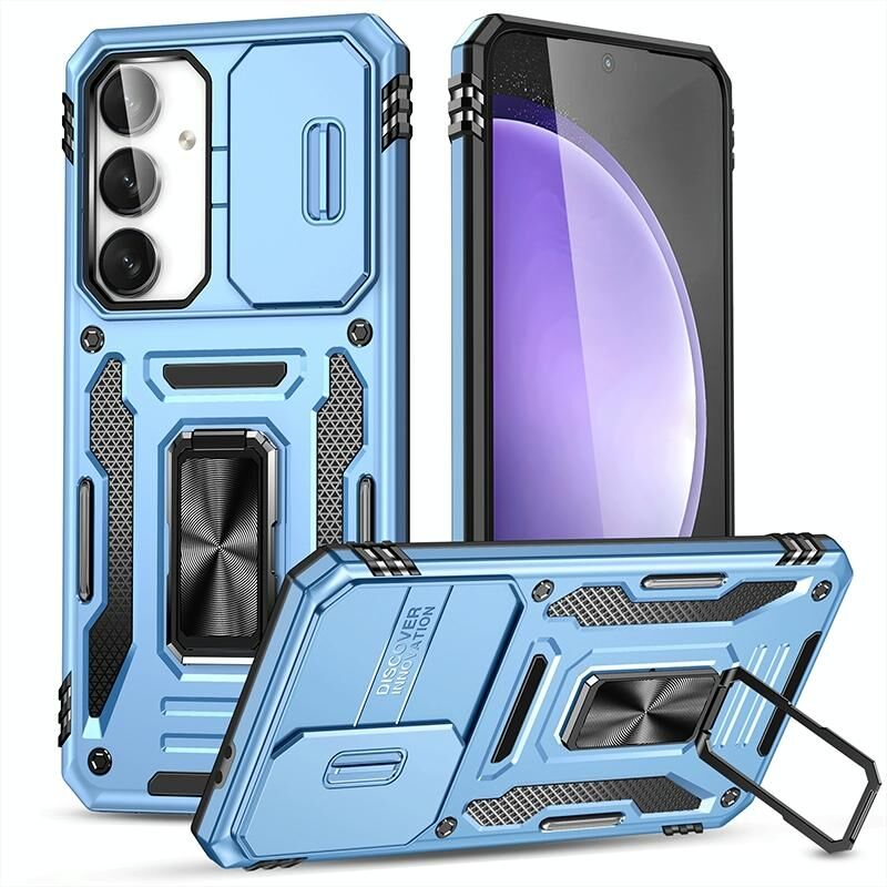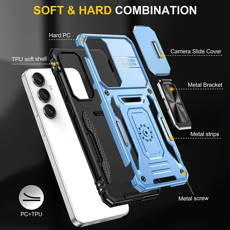 Για Samsung Galaxy S24 FE 5G θωράκιση PC υβριδικό TPU κάμερα ασπίδα τηλέφωνο υπόθεση (ανοιχτό μπλε)