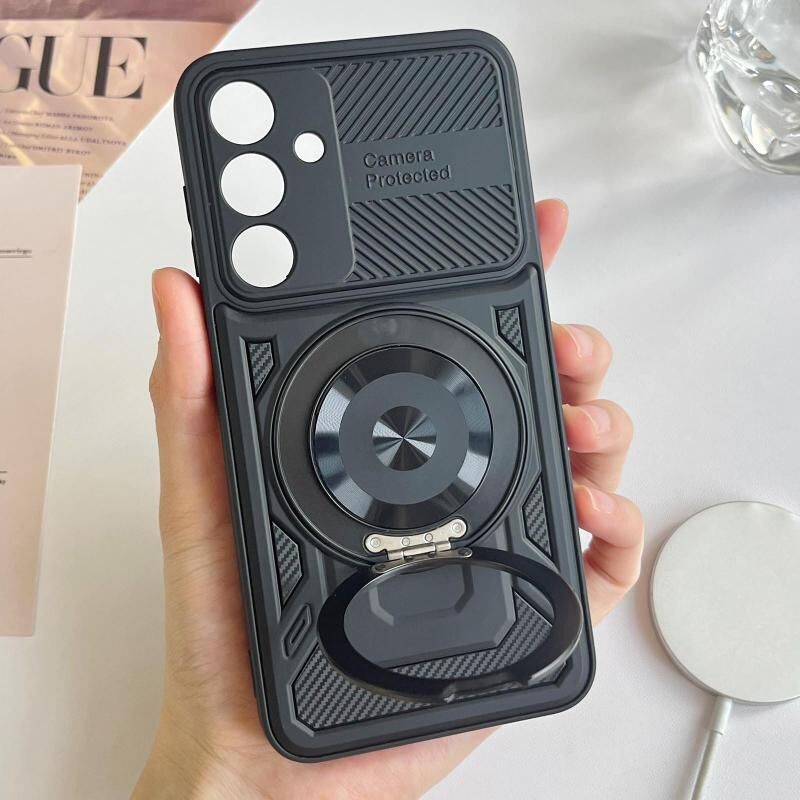 6. 360 Rotation Stand: The built-in kickstand gives you the ideal viewing angle for both landscape and portrait orientations. When folded, it seamlessly aligns with the back of the case, maintaining a slim profile for easy pocket-sliding.