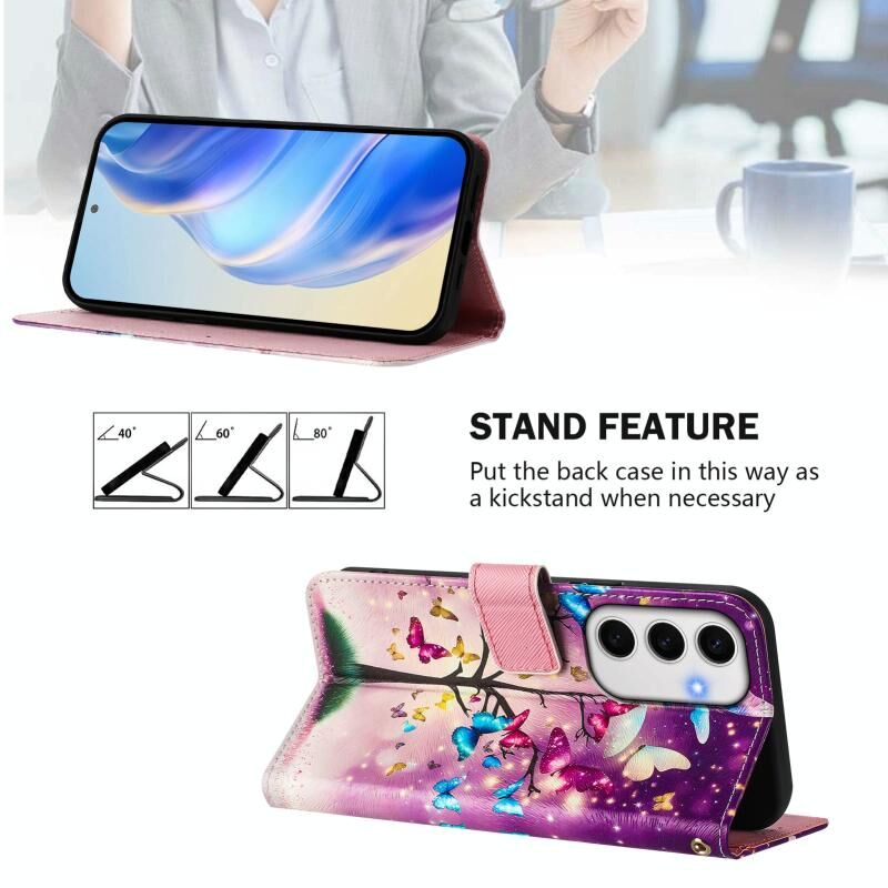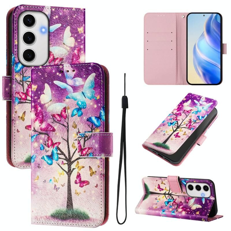 For Samsung Galaxy S24 FE 5G Art Colored Drawing Pattern Leather Phone Case(Butterfly branch)