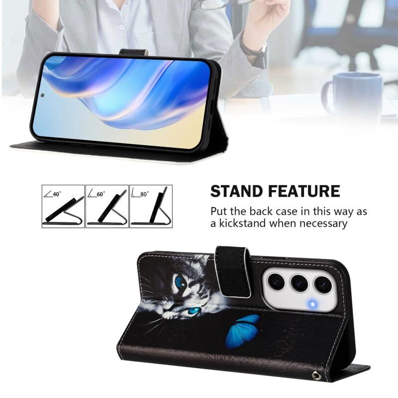 For Samsung Galaxy S24 FE 5G Art Colored Drawing Pattern Leather Phone Case(Butterfly cat)