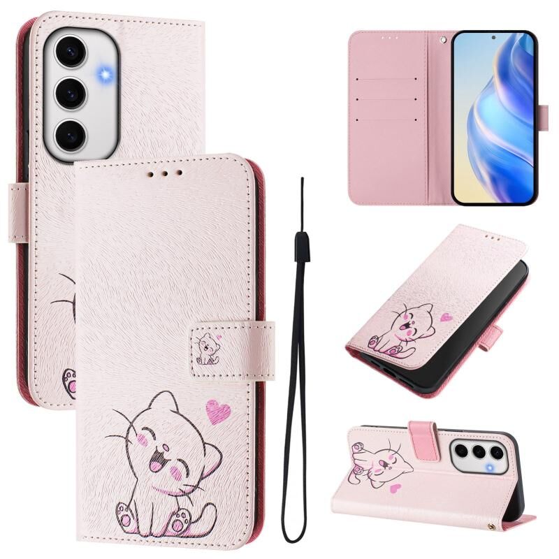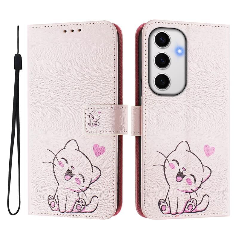 For Samsung Galaxy S24 FE 5G Art Colored Drawing Pattern Leather Phone Case(Cute cat)