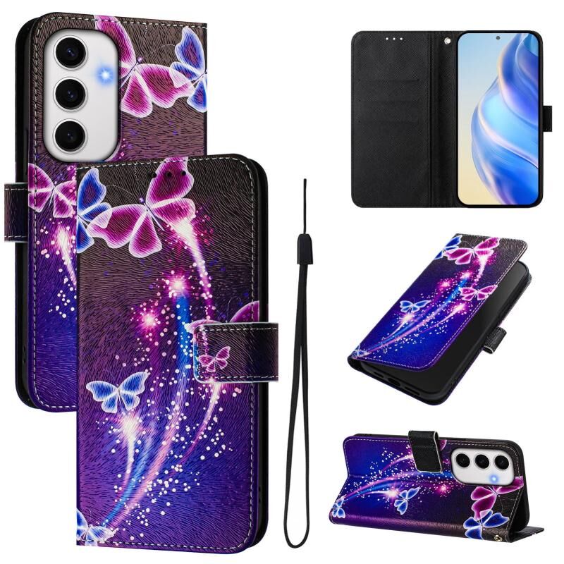 For Samsung Galaxy S24 FE 5G Art Colored Drawing Pattern Leather Phone Case(Fireworks butterfly)