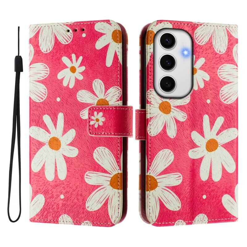 For Samsung Galaxy S24 FE 5G Art Colored Drawing Pattern Leather Phone Case(Pink daisy)