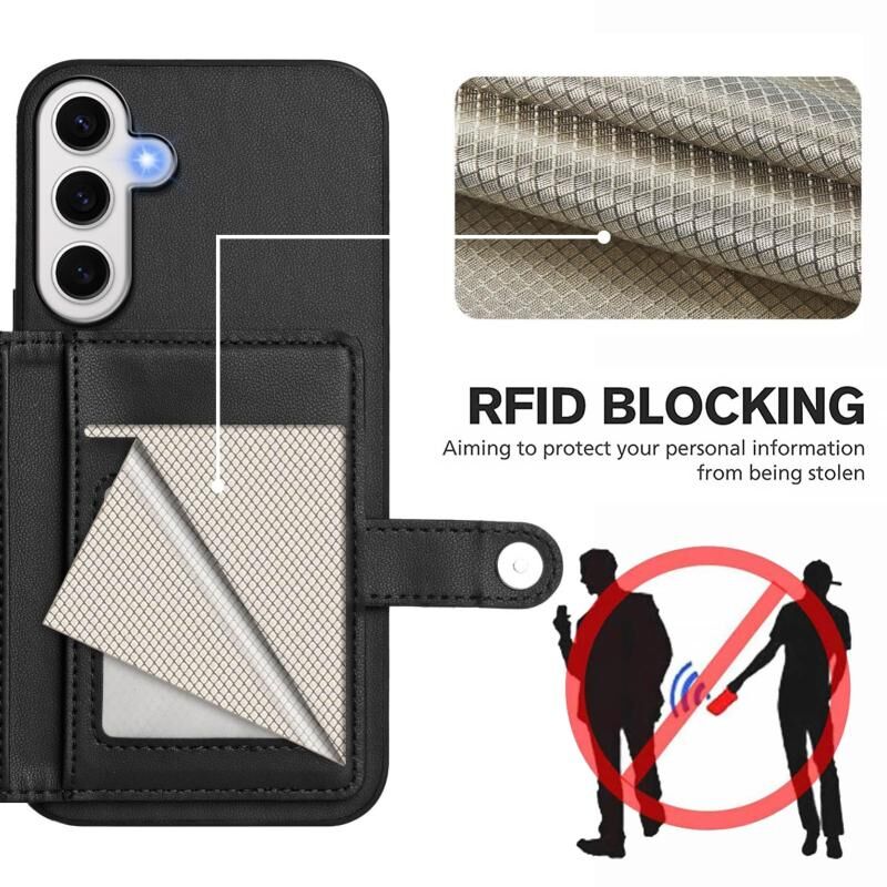 For Samsung Galaxy S24 FE 5G Button Card Bag RFID Anti-theft Phone Case(Black)