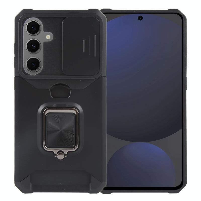 Θήκη κινητού τηλεφώνου Samsung Galaxy S24 FE 5G, Υβριδική από PC και TPU με προστασία κάμερας και θήκη για κάρτες (Μπλε)