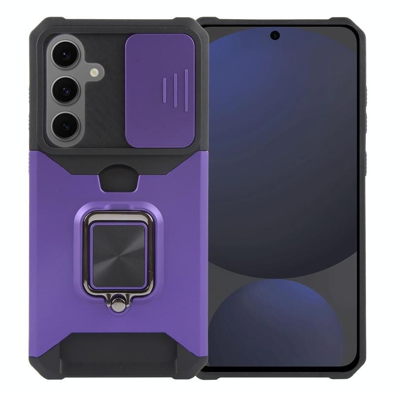Θήκη κινητού τηλεφώνου Samsung Galaxy S24 FE 5G, Υβριδική από PC και TPU με προστασία κάμερας και θήκη για κάρτες (Μπλε)