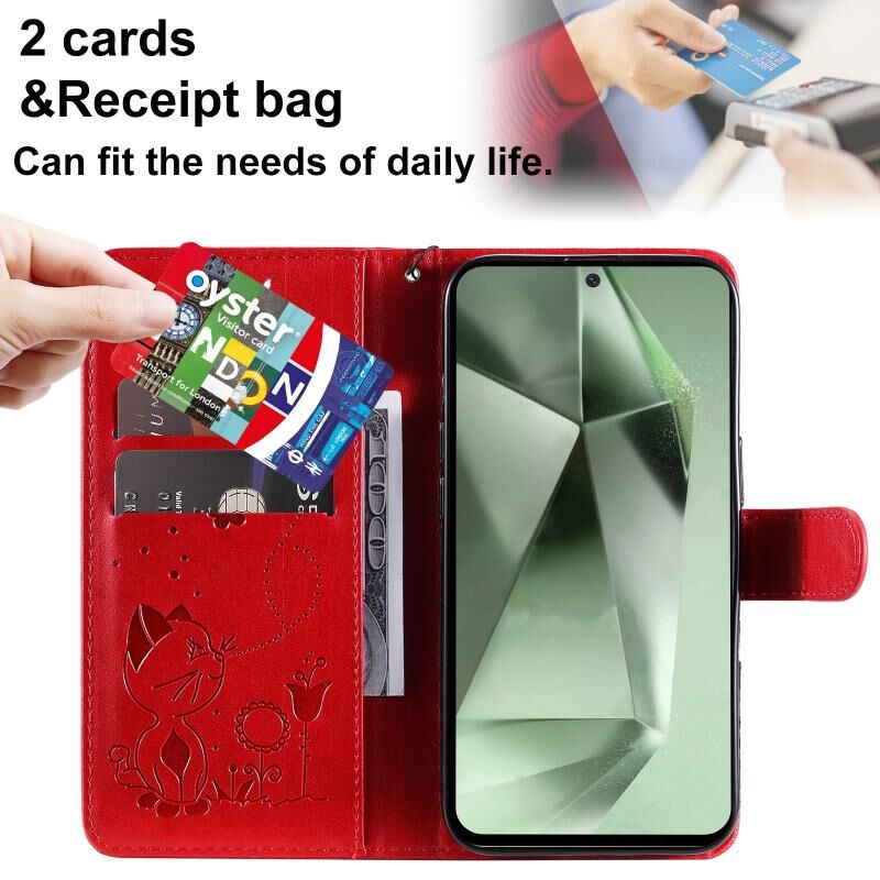 For Samsung Galaxy S24 FE 5G Cat and Bee Embossed Flip Leather Phone Case(Red)