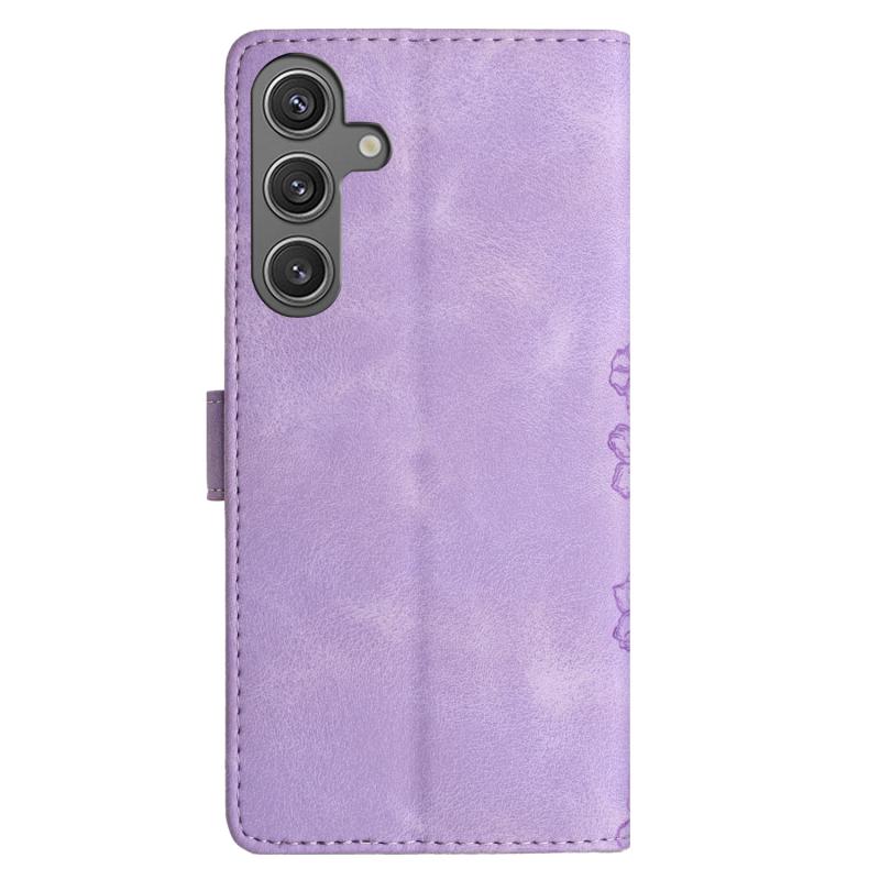 For Samsung Galaxy S24 FE 5G Cherry Blossom Butterfly Skin Feel Embossed PU Phone Case(Purple)
