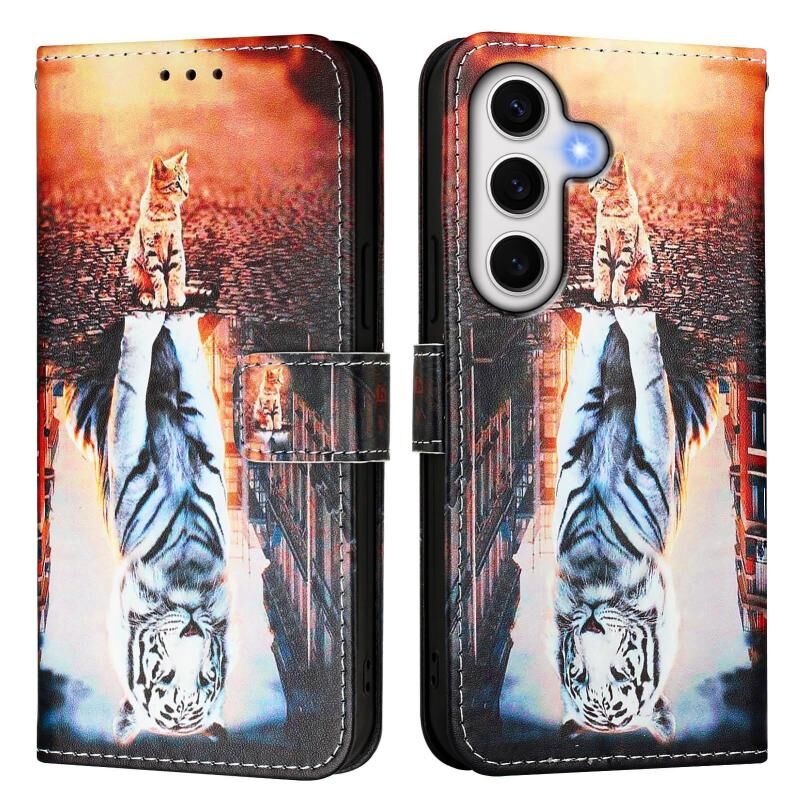 For Samsung Galaxy S24 FE 5G Colored Drawing Pattern Plain Weave Leather Phone Case(Cats And Tigers)