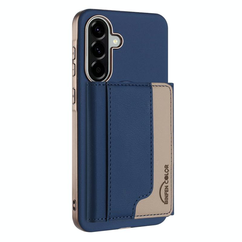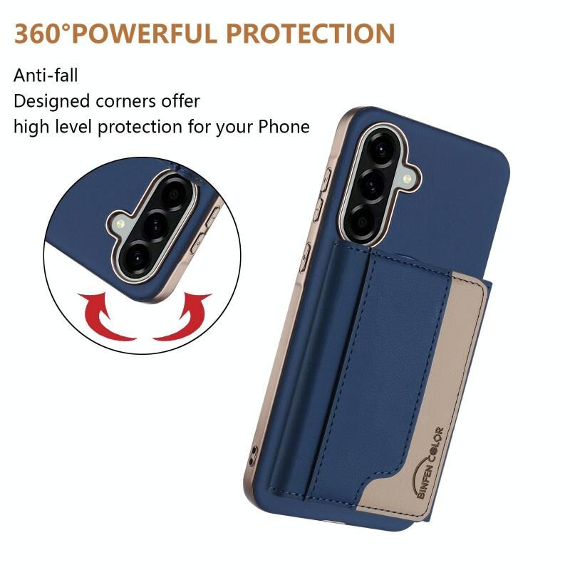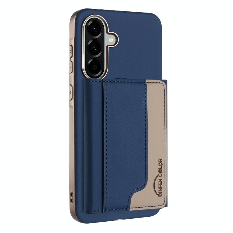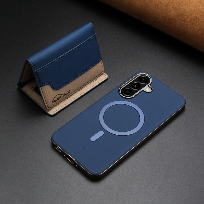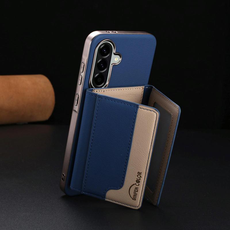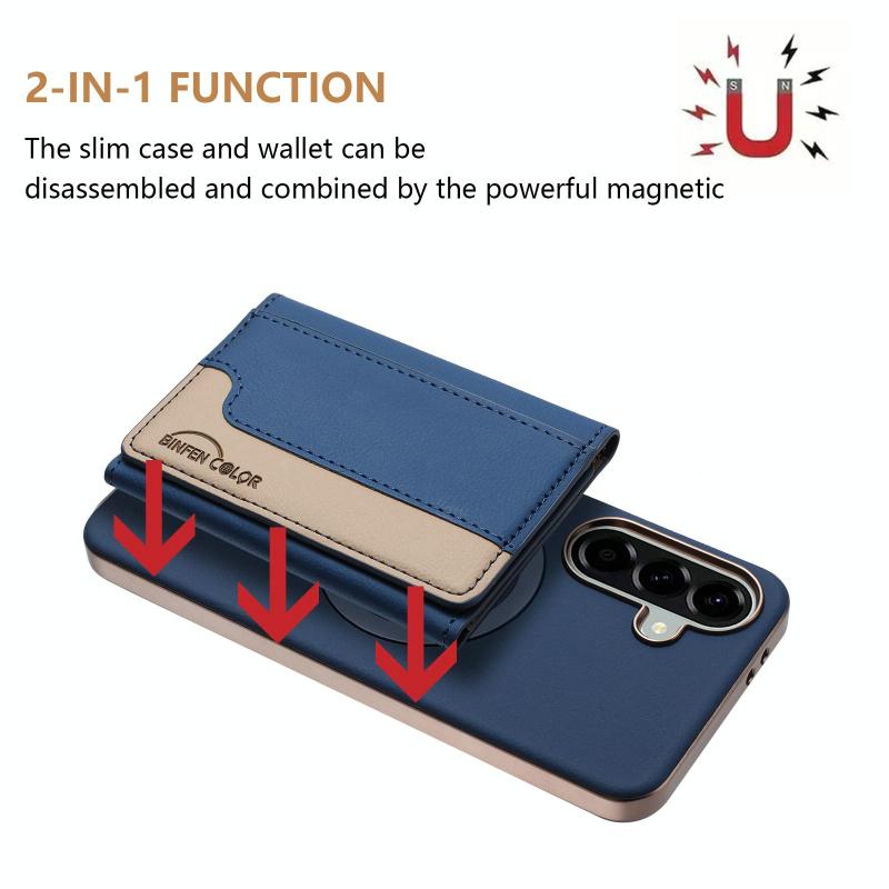 For Samsung Galaxy S24 FE 5G Colour Matching Horizontal Magnetic Card Bag RFID MagSafe Phone Case(Dark Blue)