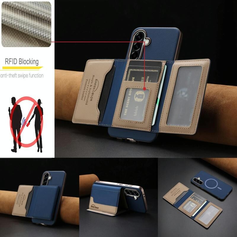 2. Magnetic Tri-Fold Wallet Design: Features a horizontal fold with a strong magnetic closure for easy access and secure storage.