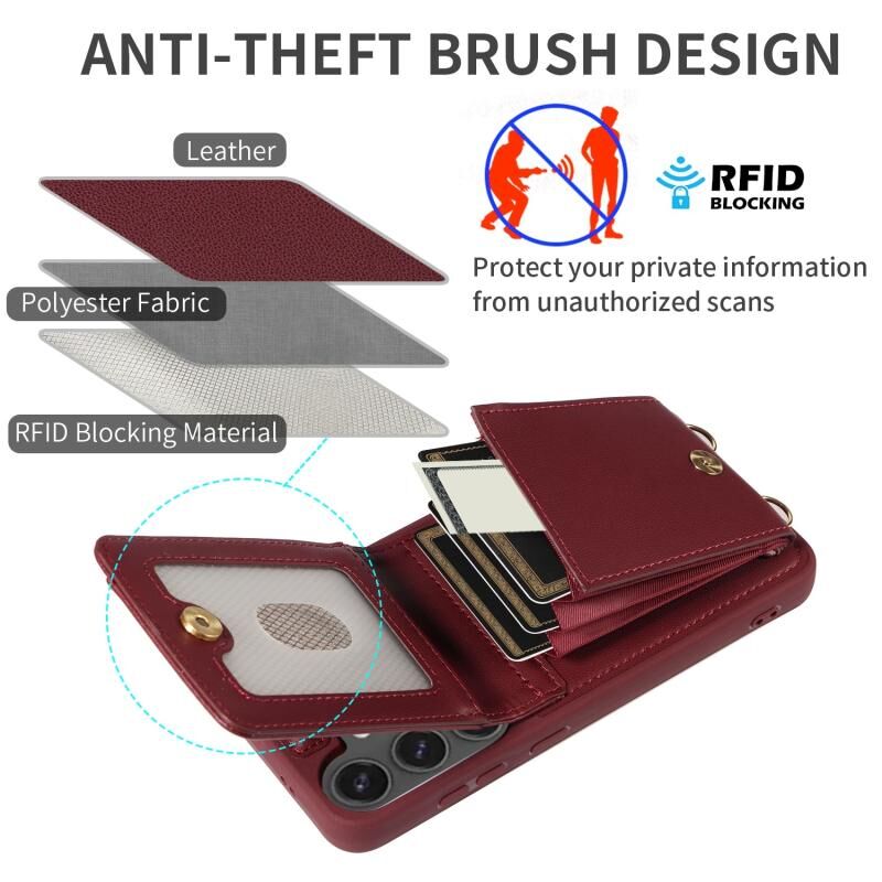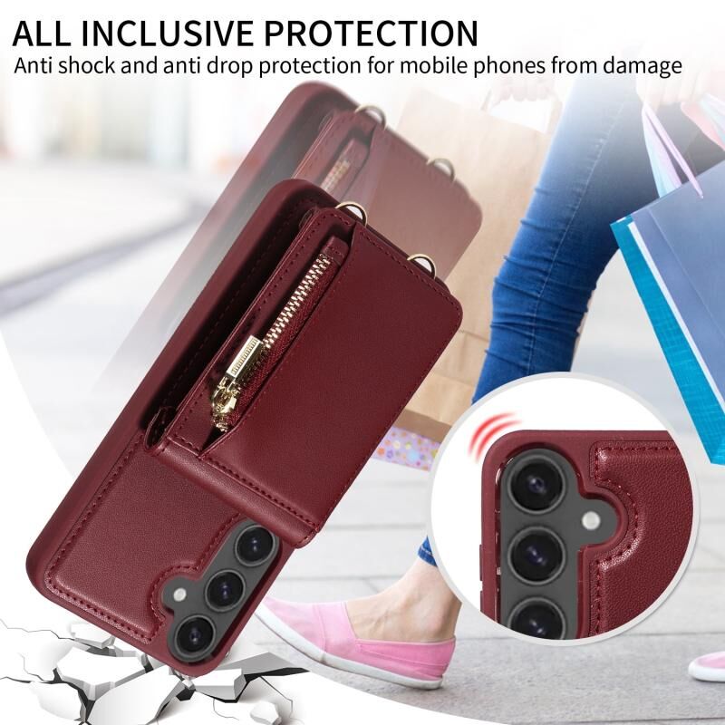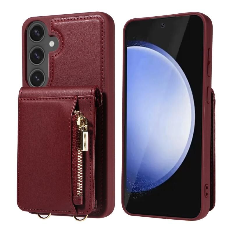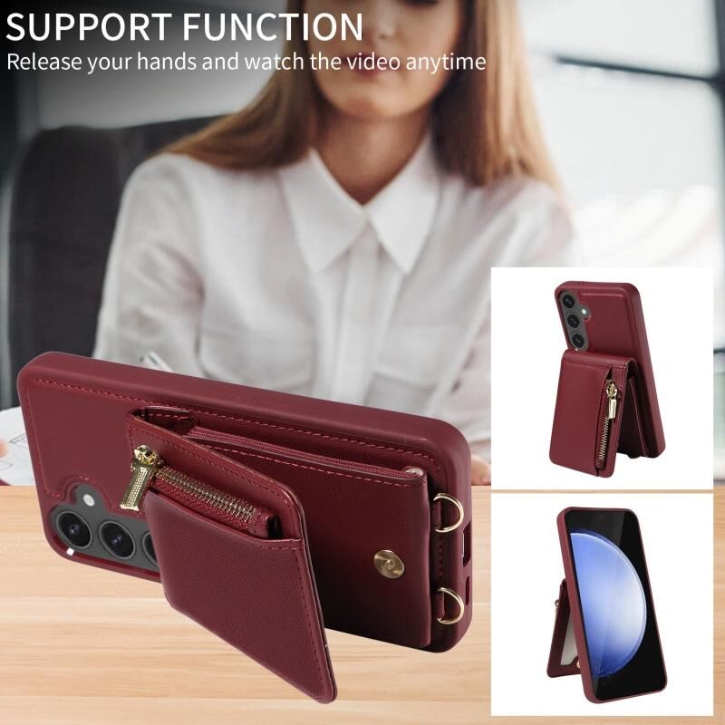 Για Samsung Galaxy S24 FE 5G Σταυρός κορδόνι Lanyard φερμουάρ πορτοφόλι δερμάτινη θήκη τηλεφώνου (κόκκινο κρασί)
