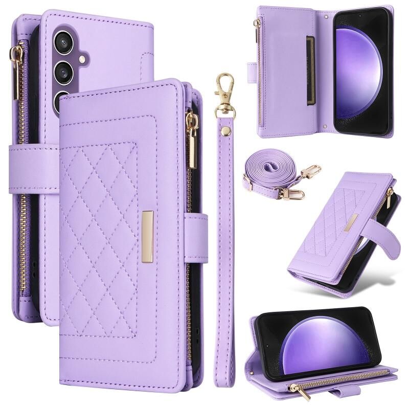 Για Samsung Galaxy S24 FE 5G Crossbody φερμουάρ πορτοφόλι ρόμβος δερμάτινη θήκη τηλεφώνου (μωβ)