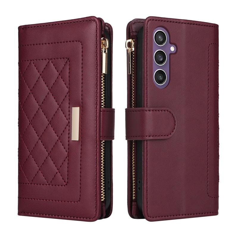 Για Samsung Galaxy S24 FE 5G Crossbody φερμουάρ πορτοφόλι ρόμβος δερμάτινη θήκη τηλεφώνου (κόκκινο κρασί)