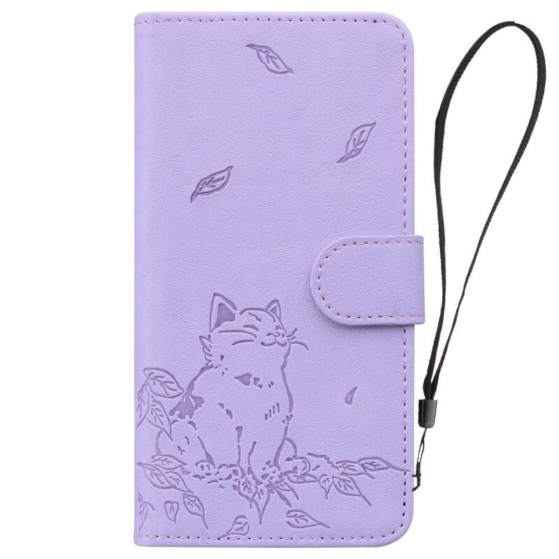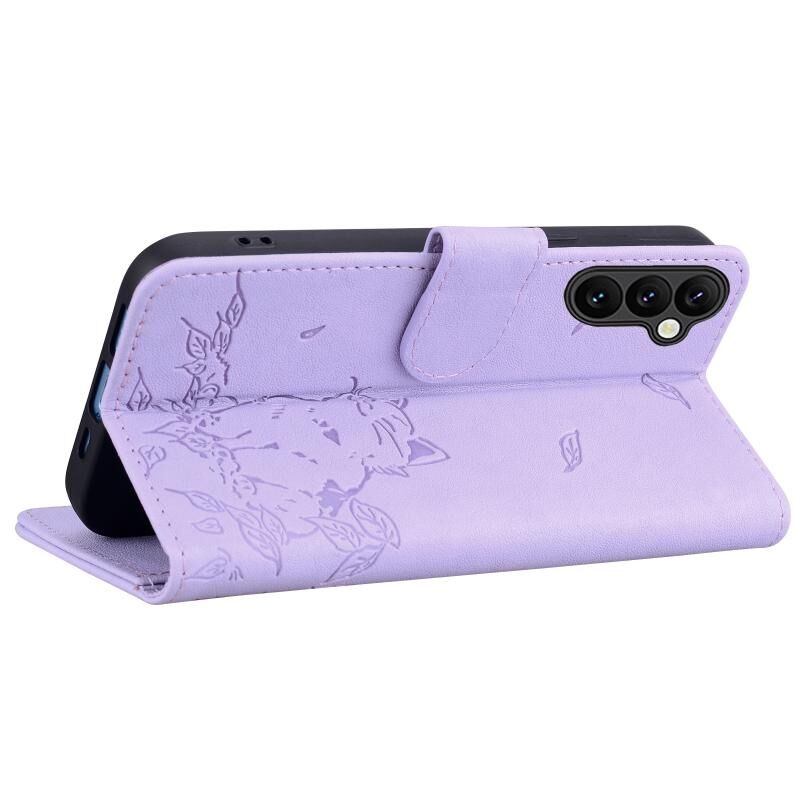 Θήκη τηλεφώνου από δέρμα με ανάγλυφο χαριτωμένο γατάκι για Samsung Galaxy S24 FE 5G (Μωβ)