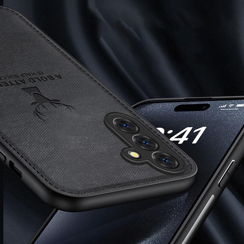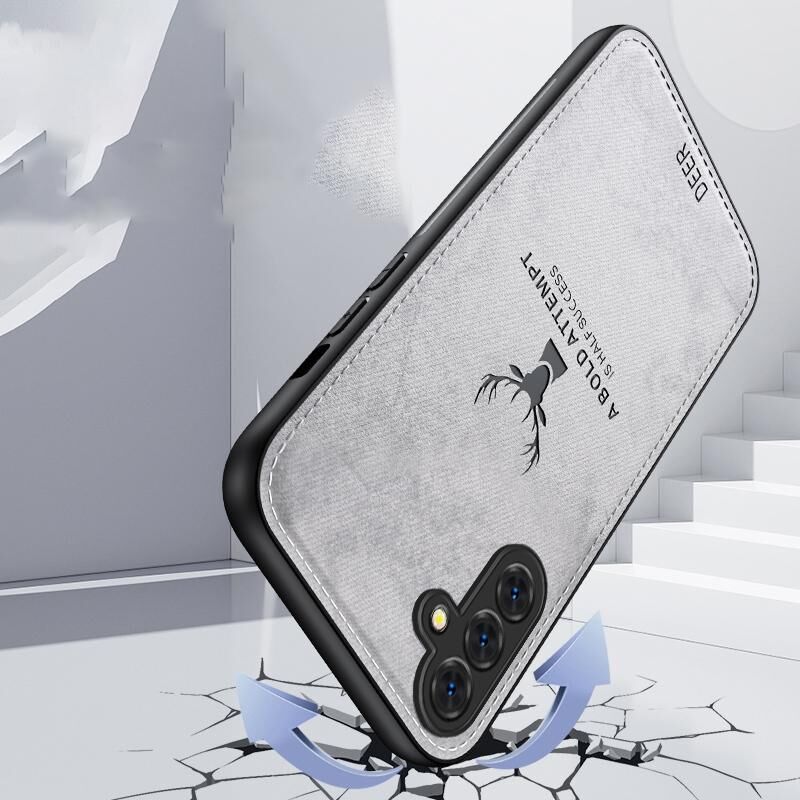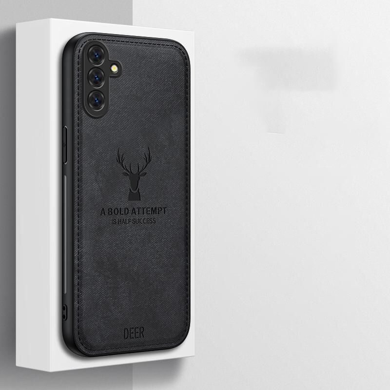 Θήκη τηλεφώνου πλήρους κάλυψης για Samsung Galaxy S24 FE 5G, με σχέδιο κεφαλιού ελαφιού και υφασμάτινη υφή (Μαύρο)