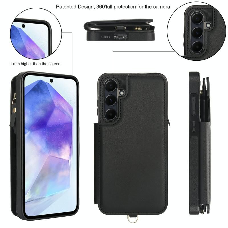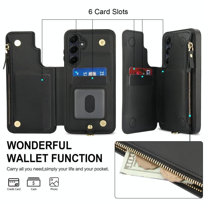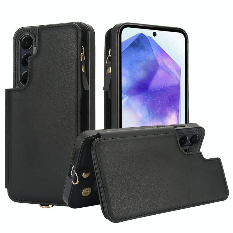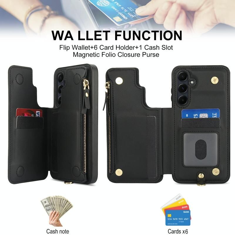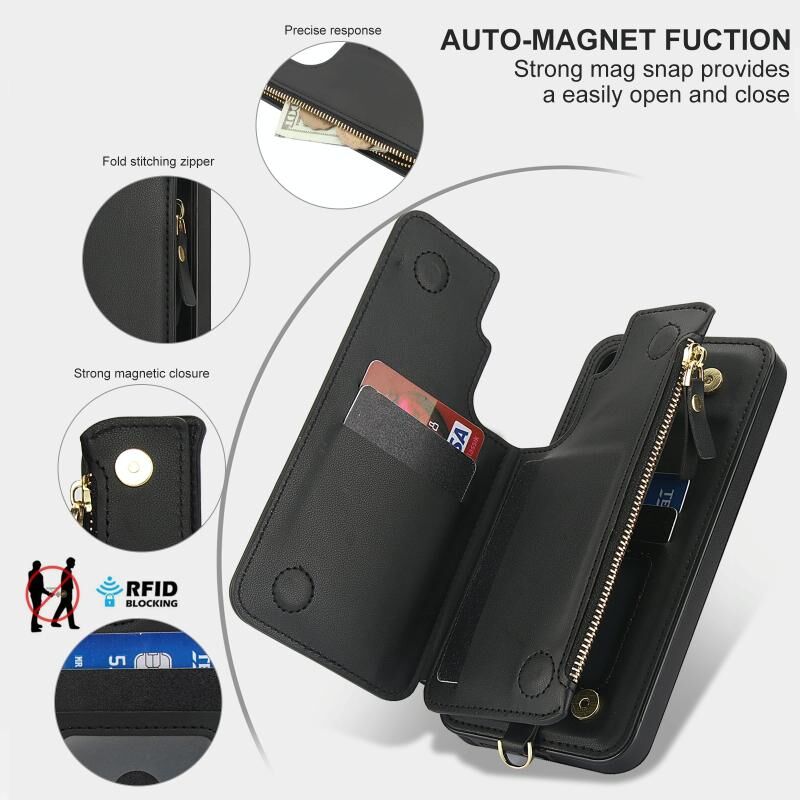 Θήκη τηλεφώνου Samsung Galaxy S24 FE 5G από δέρμα με διπλό κλείσιμο με φερμουάρ και RFID, με κοντό κορδόνι (Λευκό)
