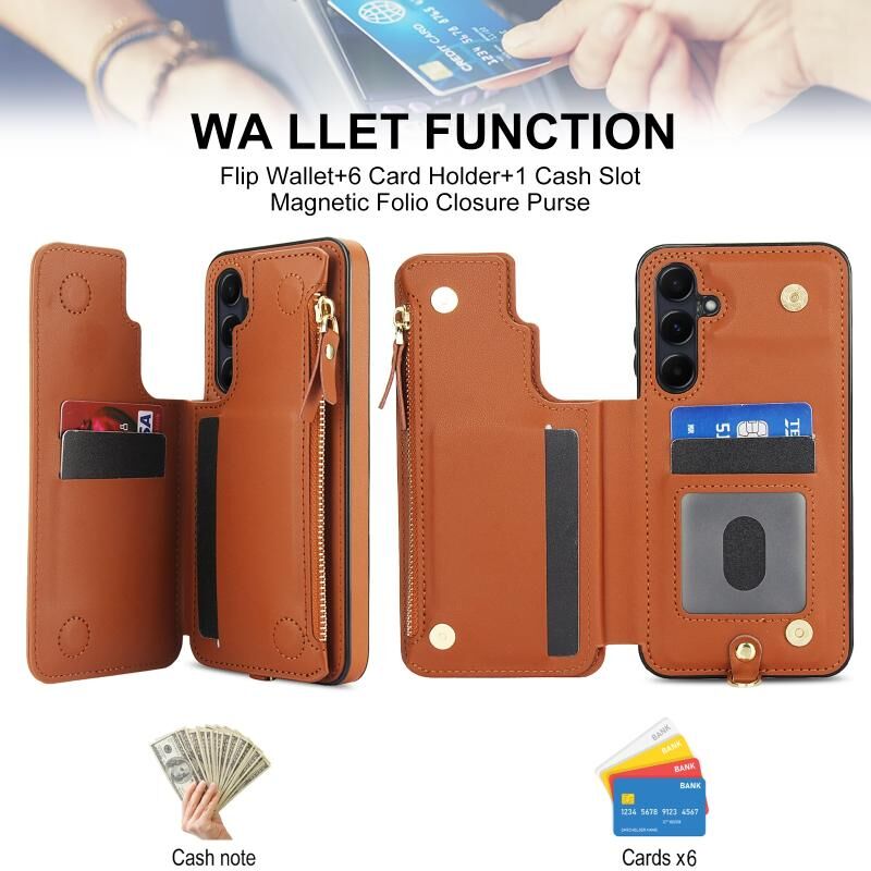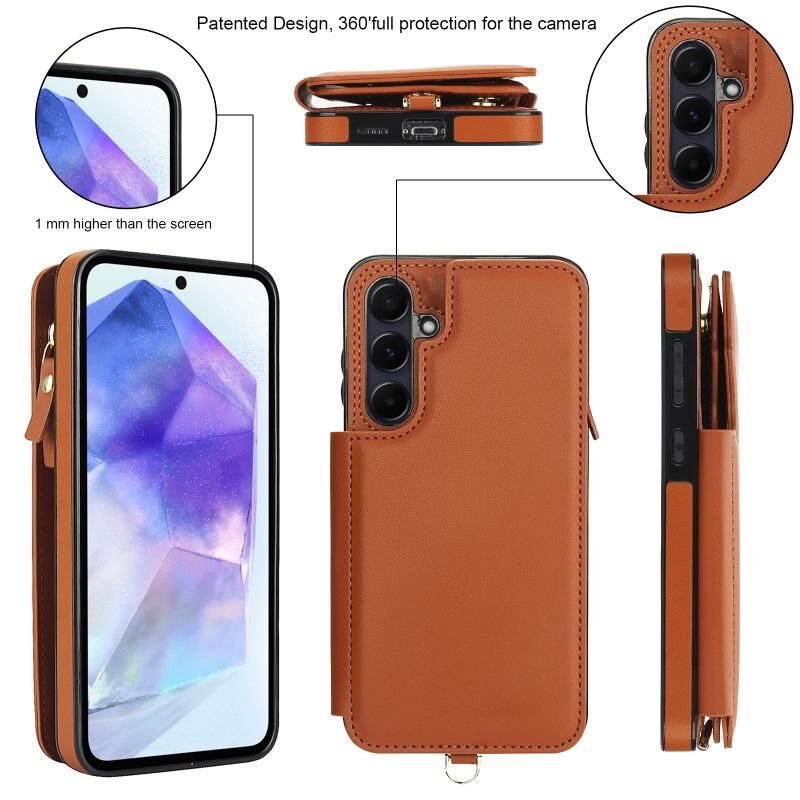Θήκη τηλεφώνου Samsung Galaxy S24 FE 5G από δέρμα με διπλό κλείσιμο με φερμουάρ και RFID, με κοντό κορδόνι (Λευκό)