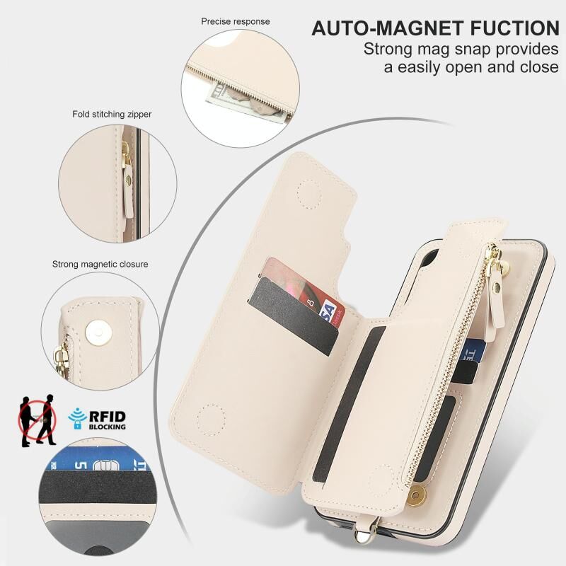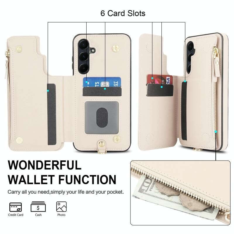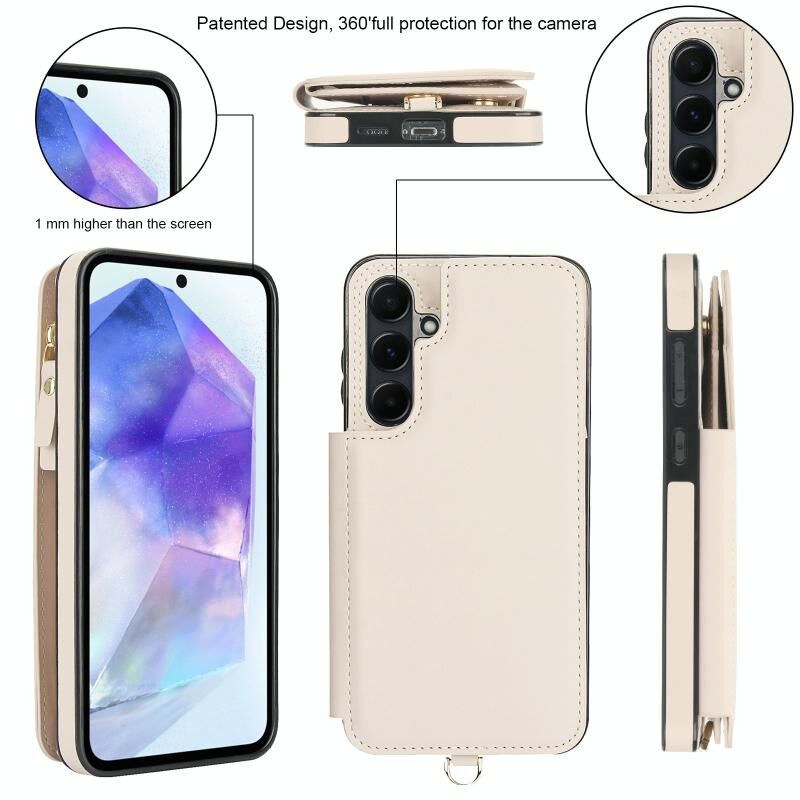 Θήκη τηλεφώνου Samsung Galaxy S24 FE 5G από δέρμα με διπλό κλείσιμο με φερμουάρ και RFID, με κοντό κορδόνι (Λευκό)
