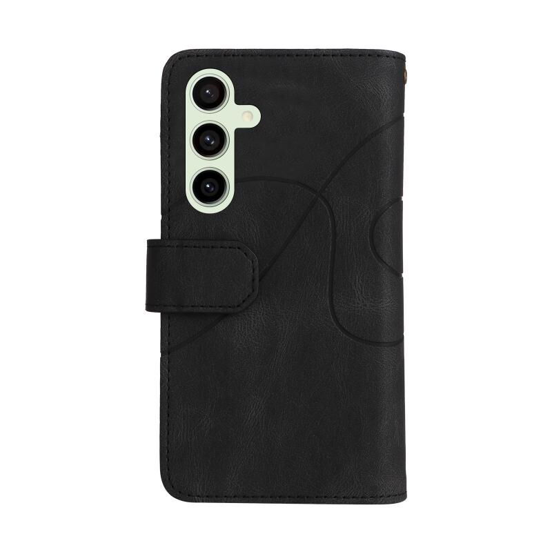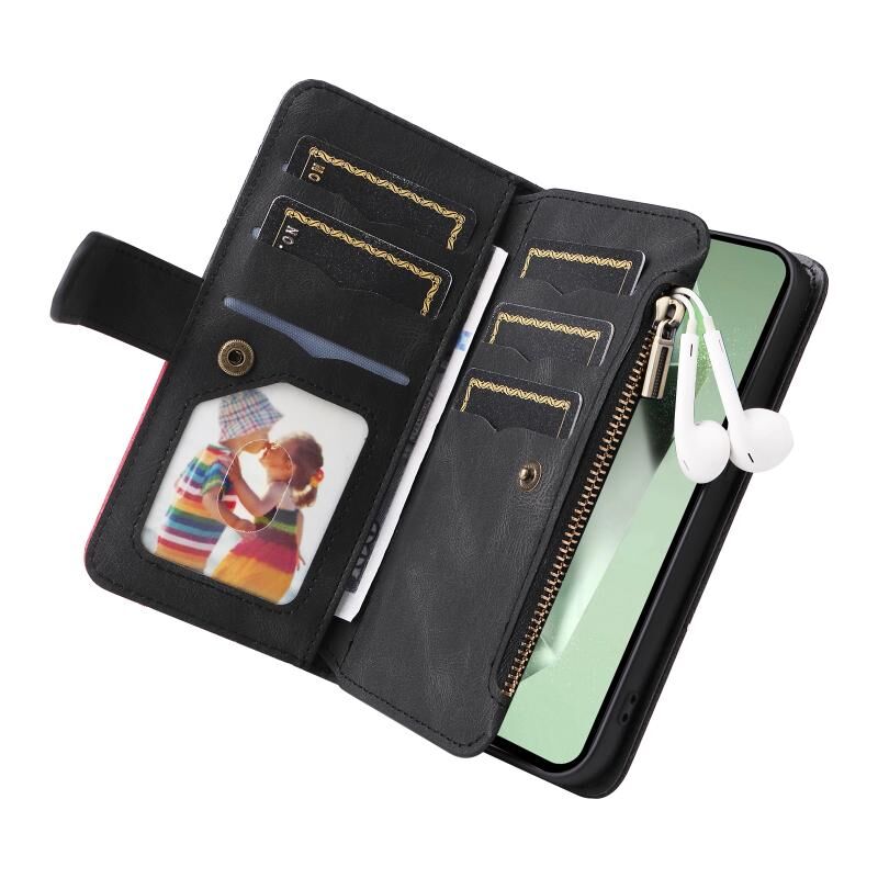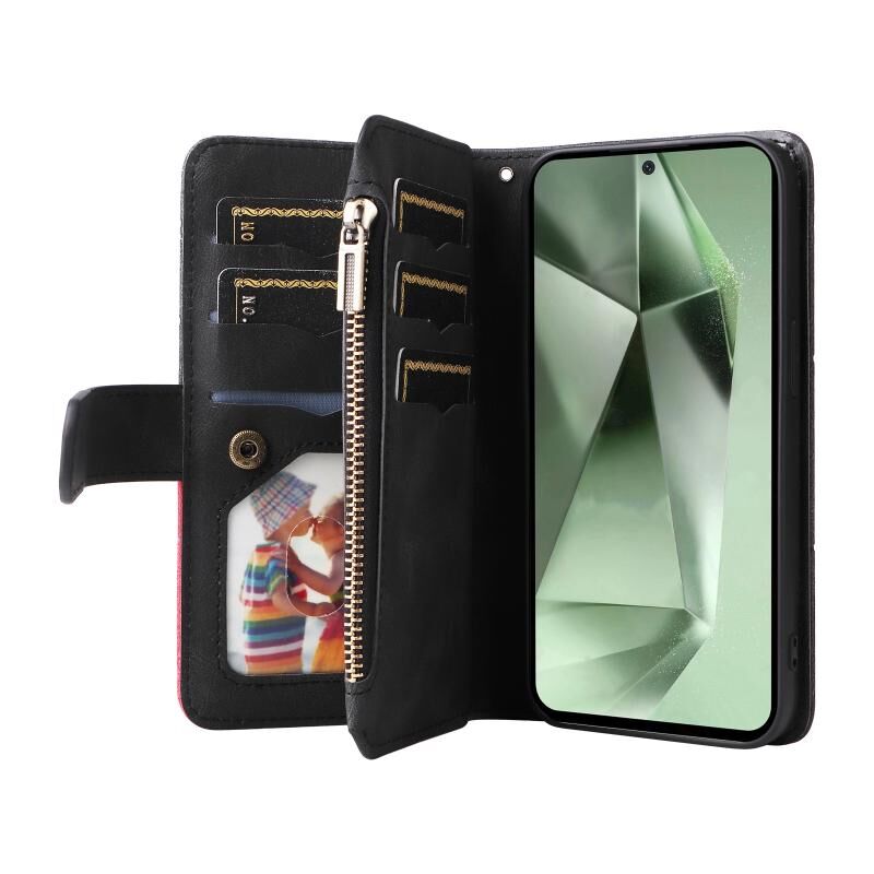 Για Samsung Galaxy S24 FE 5G Dual-color 9 υποδοχές καρτών φερμουάρ πορτοφόλι δερμάτινη θήκη τηλεφώνου (Μαύρο)
