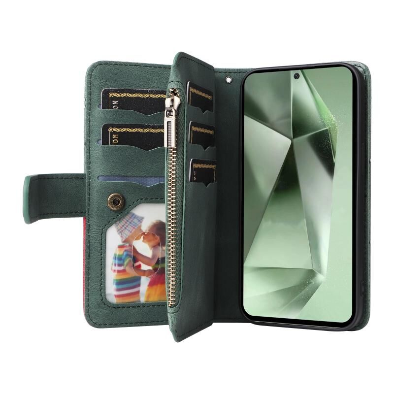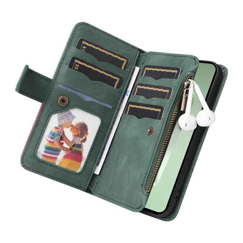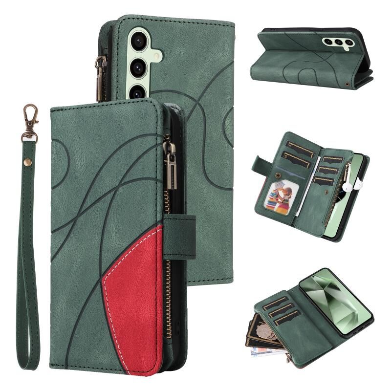 Για Samsung Galaxy S24 FE 5G Dual-χρώμα 9 υποδοχές καρτών φερμουάρ πορτοφόλι δερμάτινη θήκη τηλεφώνου (πράσινο)