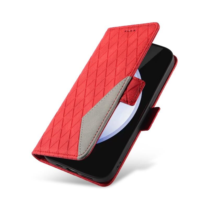 Για Samsung Galaxy S24 FE 5G Διπλό χρώμα Rhombic Lattice Δερμάτινη θήκη τηλεφώνου (κόκκινο)