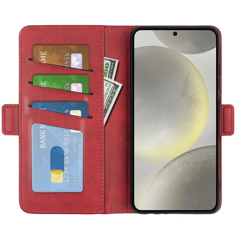 Για Samsung Galaxy S24 FE 5G διπλής όψης μαγνητική πόρπη οριζόντια Flip δερμάτινη θήκη τηλεφώνου (κόκκινο)
