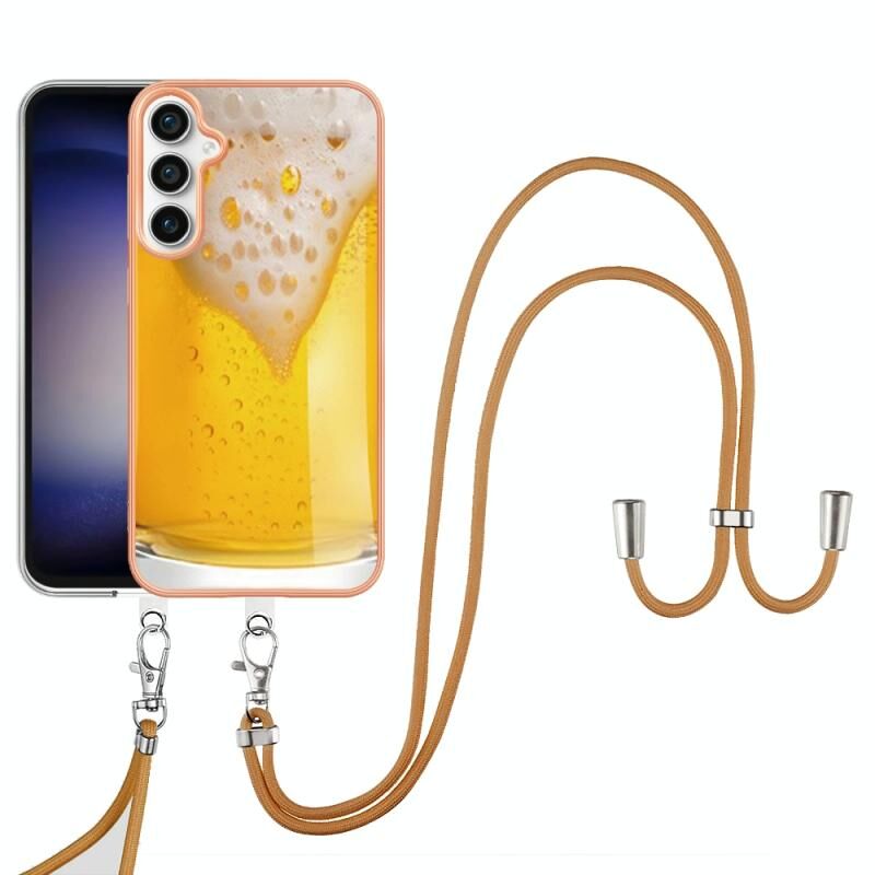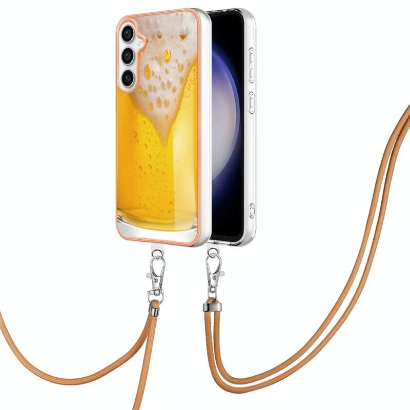Θήκη τηλεφώνου με κορδόνι για Samsung Galaxy S24 FE 5G, με ηλεκτρολυτική επιμετάλλωση και διπλής όψης IMD (Draft Beer)