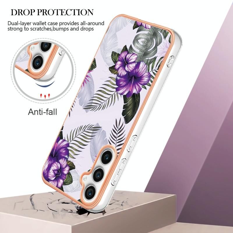 Για Samsung Galaxy S24 FE 5G Electroplating IMD TPU τηλέφωνο υπόθεση (μωβ λουλούδι)