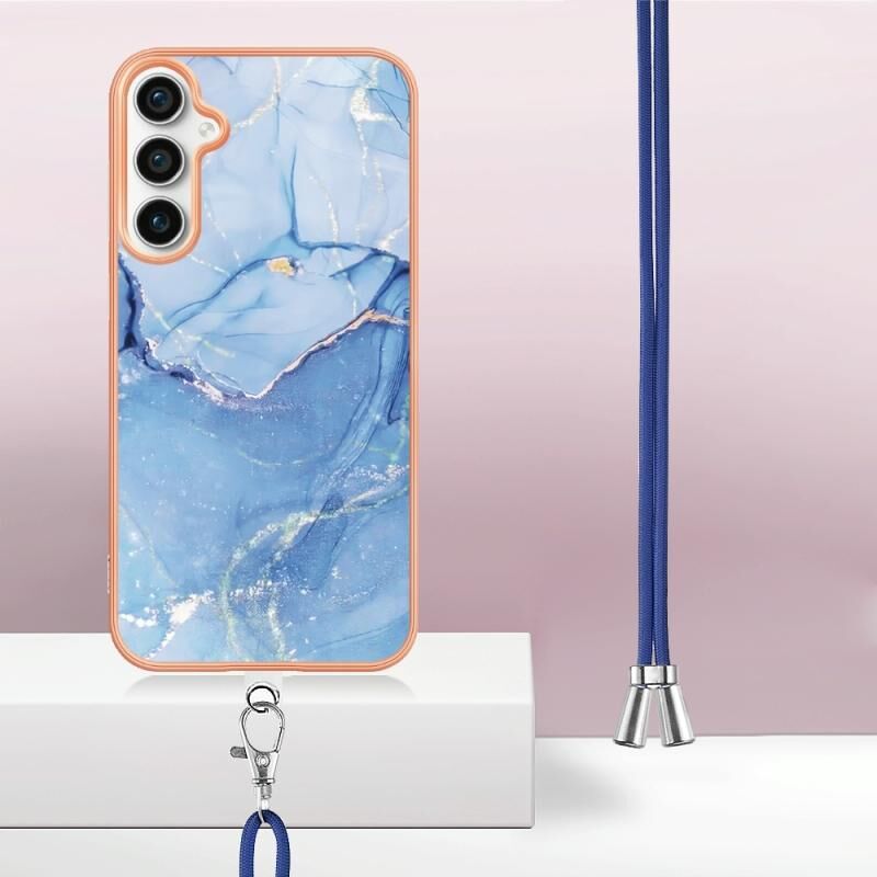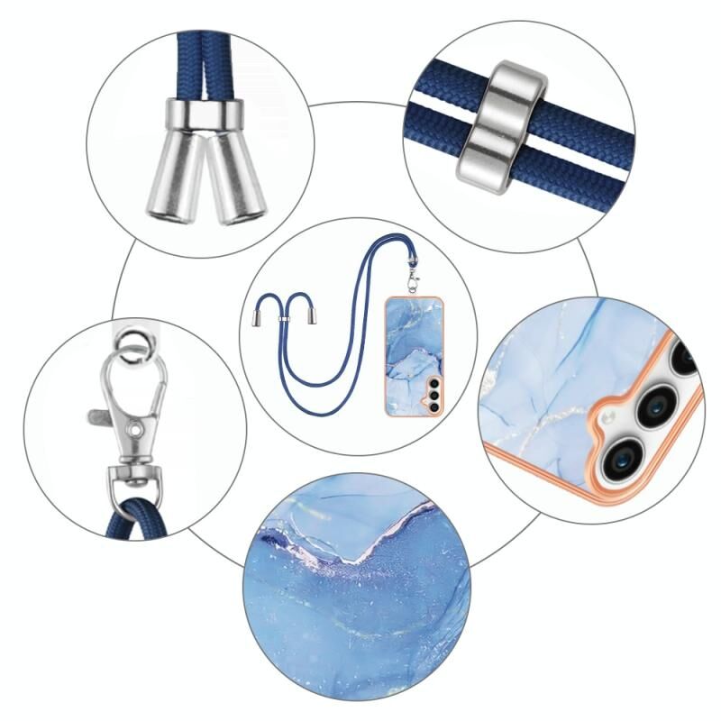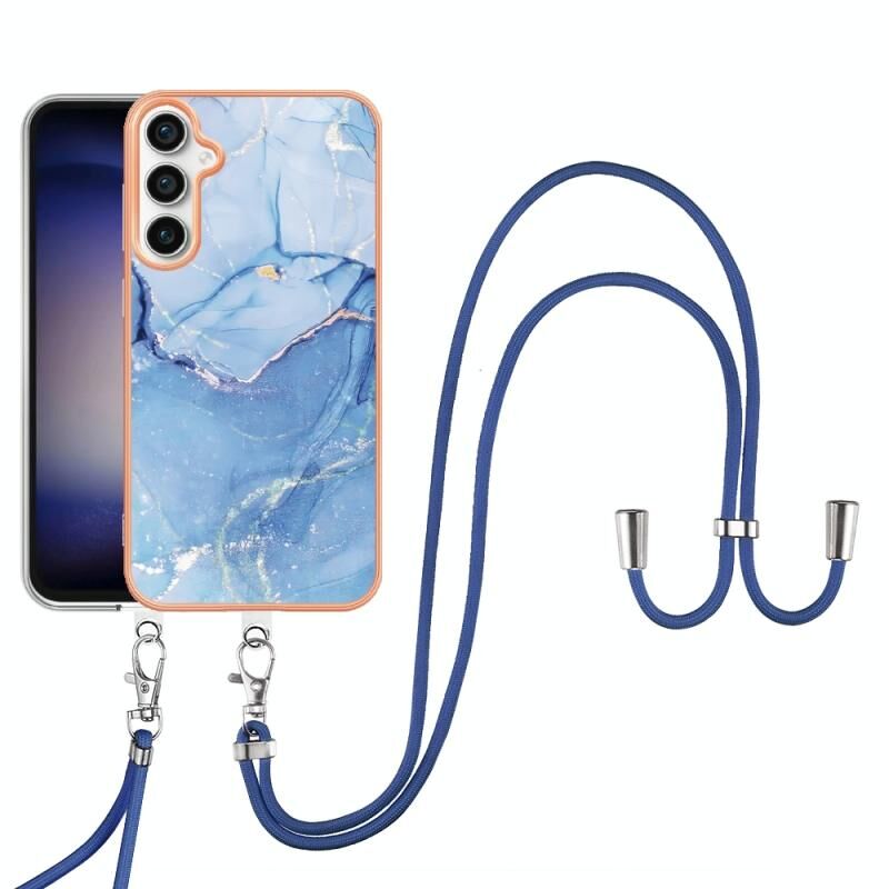 Θήκη τηλεφώνου για Samsung Galaxy S24 FE 5G με ηλεκτρολυτική μαρμάρινη επένδυση IMD διπλής όψης με κορδόνι (Χρυσό Ρόδι 015)