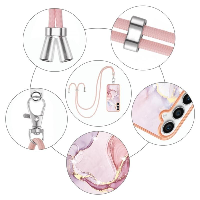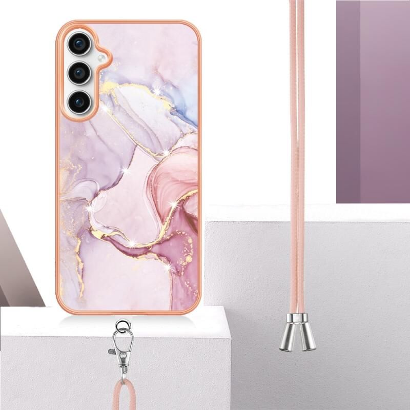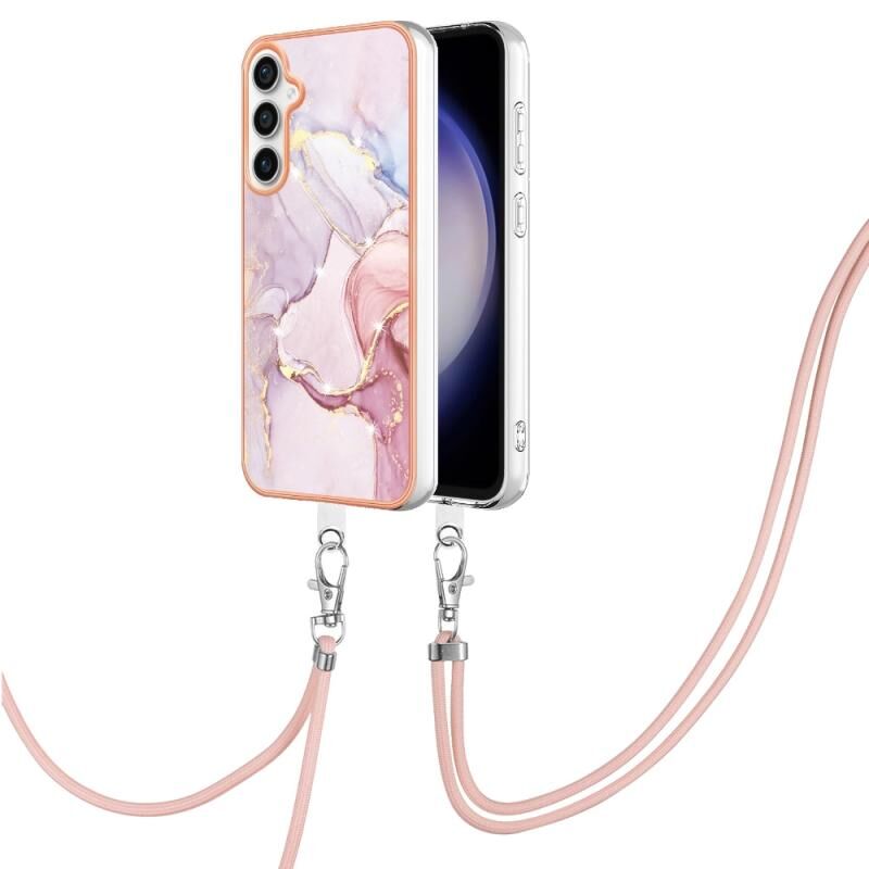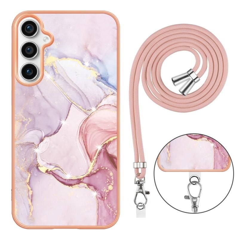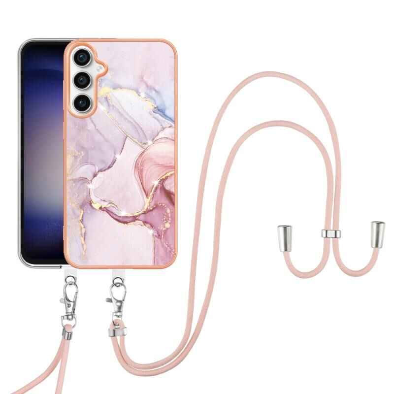 Θήκη τηλεφώνου για Samsung Galaxy S24 FE 5G με ηλεκτρολυτική μαρμάρινη επένδυση IMD διπλής όψης με κορδόνι (Μωβ 001)
