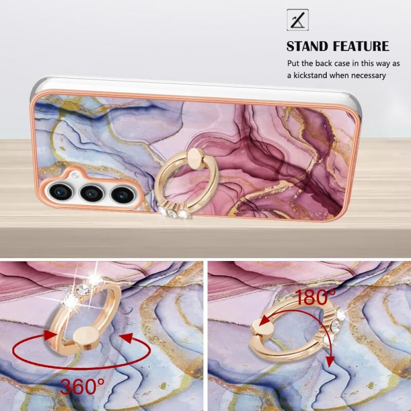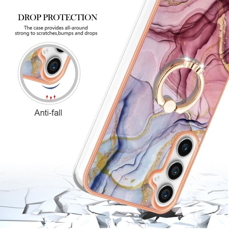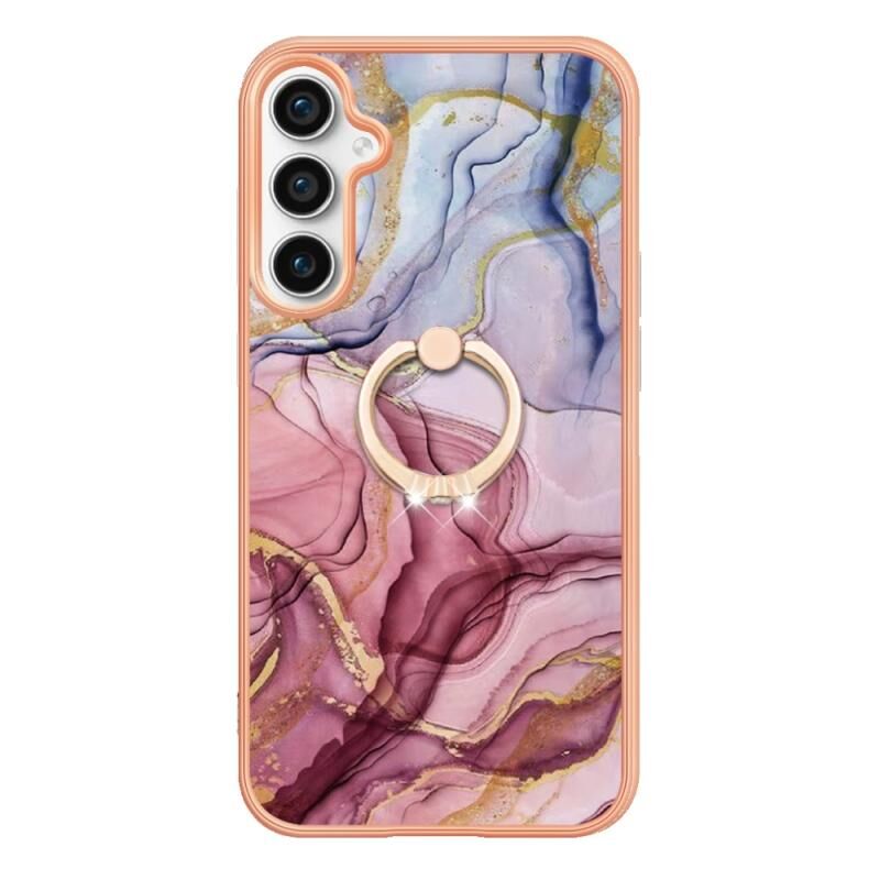 Θήκη τηλεφώνου για Samsung Galaxy S24 FE 5G με ηλεκτρολυτική μαρμάρινη επένδυση IMD διπλής όψης με δαχτυλίδι (Ροζ 013)