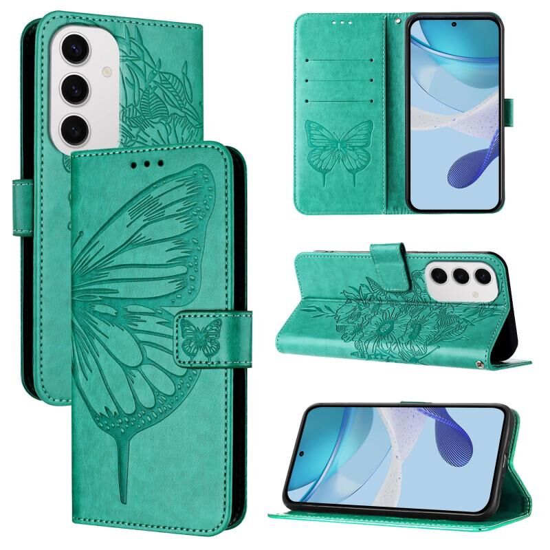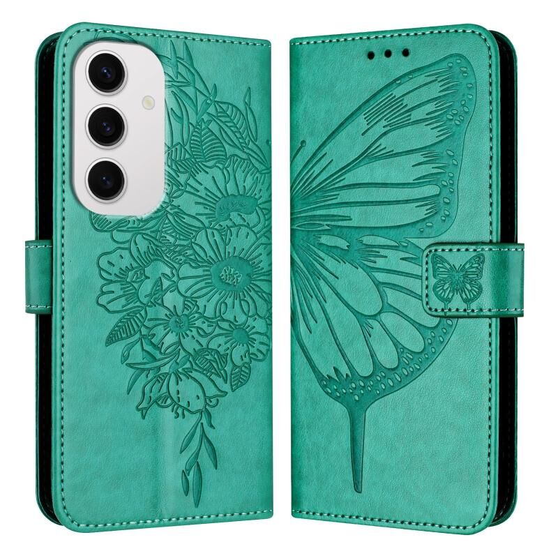 Για Samsung Galaxy S24 FE 5G ανάγλυφη πεταλούδα δερμάτινη θήκη τηλεφώνου (πράσινο)