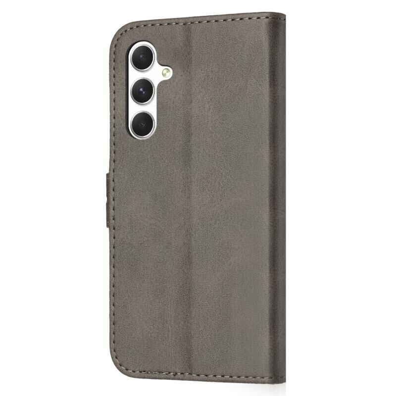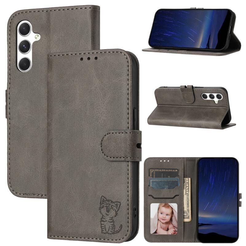 Για Samsung Galaxy S24 FE 5G ανάγλυφο Happy Cat μοτίβο Flip δέρμα τηλέφωνο υπόθεση (γκρι)