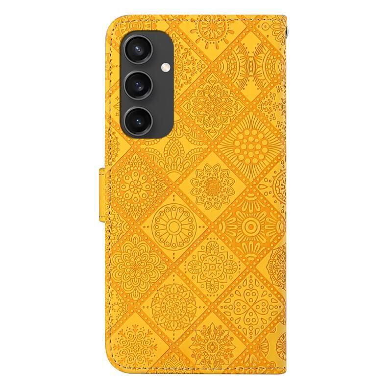 For Samsung Galaxy S24 FE 5G Ethnic Style Embossed Pattern Leather Phone Case(Yellow)